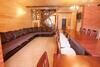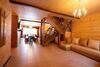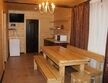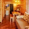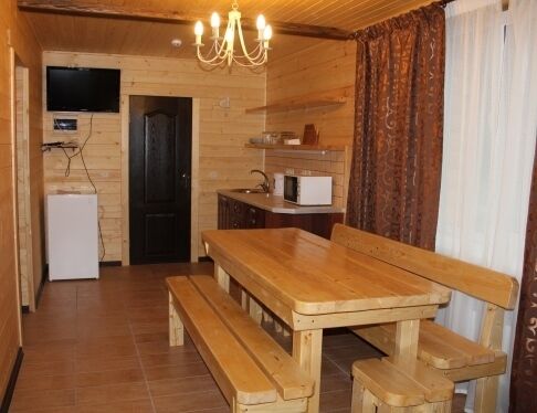 - Уютная гостиная, в которой есть всё для того, чтобы ощущать комфорт во время отдыха продолжительное время, это- холодильник, спутниковое телевидение, микроволновая печь, посуда для каждой персоны. Для удобства в гостиной есть деревянный кухонный уголок, состоящий из большого обеденного стола, скамеек и табуретов, а так же кухонный гарнитур.