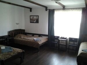 Обычный номер: без душевой кабины, с сан узлом, телевизор, кровати (полуторки и одноместные), баня включена.