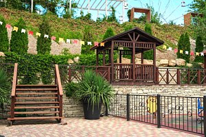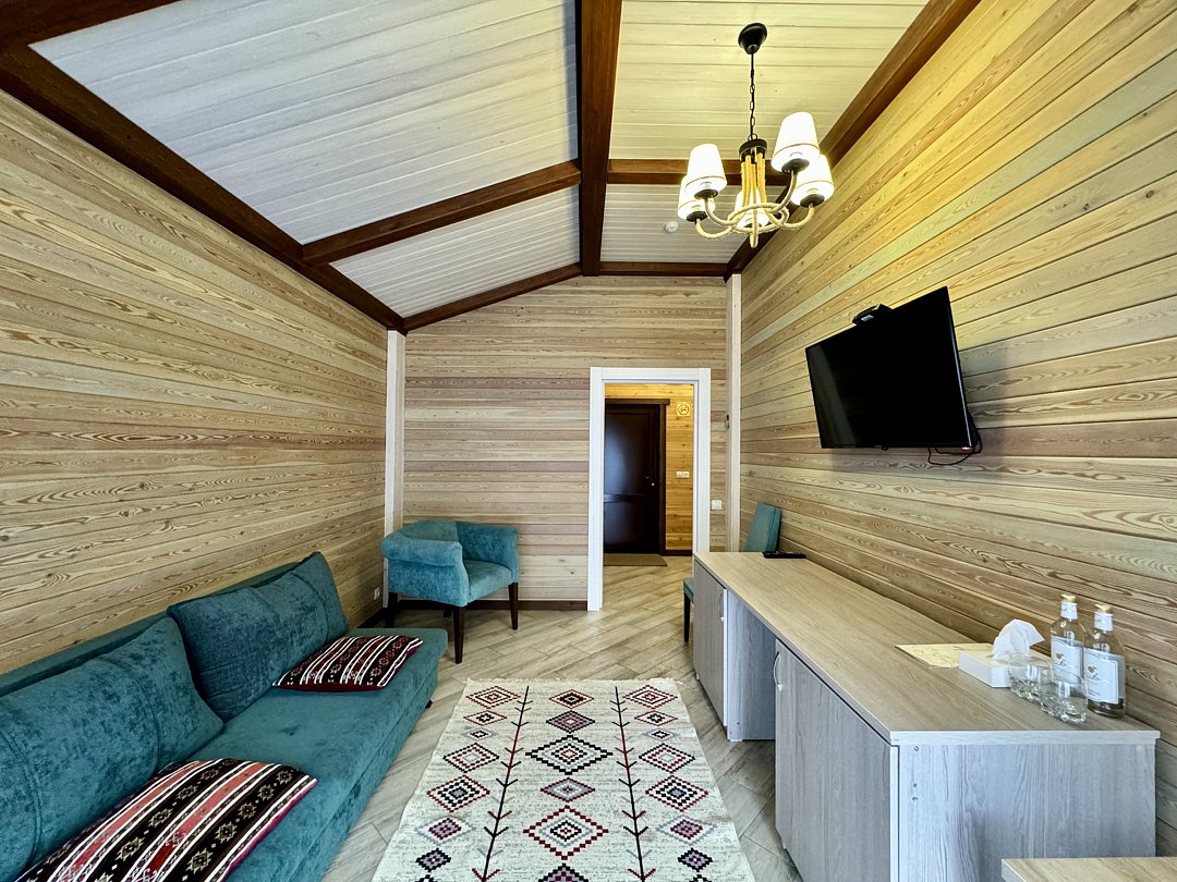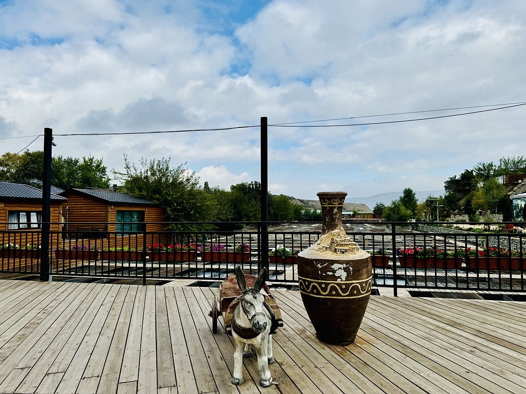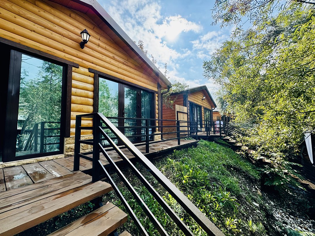 Здесь гармонично сочетаются уникальные природные ландшафты, комфортабельные номера и эко-домики, а также насыщенная программа развлечений для всей семьи. Особая атмосфера создается благодаря экологичной деревянной архитектуре номеров и домиков с мебелью из натурального массива, украшенной коврами ручной работы и элементами традиционного быта горцев.