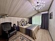 Самый большой шестиместный дом VIP на территории комплекса. Два этажа, три просторные и комфортные спальни, уютный бассейн, хамам, санузлы, общая гостиная комната, кухонная зона — и все это в абсолютной приватности!