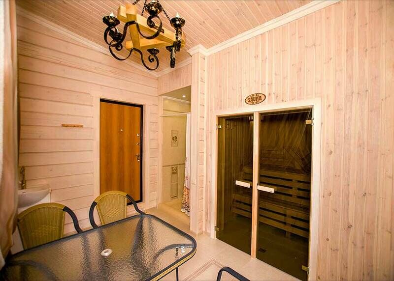 Роскошный двухэтажный дом (столовая, гостиная и две спальни) с просторной гардеробной и кухней для приготовления приватных обедов. В гостиной – белый кожаный диван, кресло для релаксации, низкий журнальный стол и обеденная зона. Сочетание респектабельной классики и современных дизайнерских элементов. Обилие изысканных светильников позволяет создать нужную атмосферу. В гостиной спутниковое ТВ с широким плазменным телевизором, бесплатный проводной и беспроводной интернет. Две ванные комнаты, одна из них с изысканной ванной на ножках, вторая с просторной душевой кабиной. На втором этаже удобное рабочее место. А также уютная каминная и великолепная сауна.