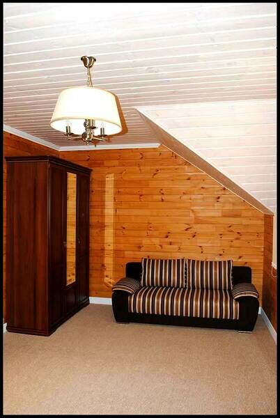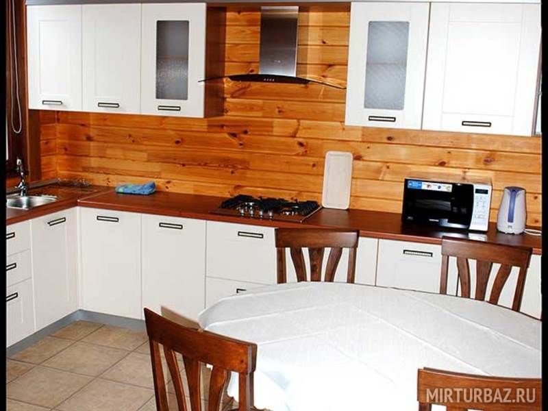 Обстановку отличает комфорт и удобство: просторная светлая гостиная с обеденной зоной, рассчитанной на шесть персон, с возможностью просмотра спутникового телевидения. Удобная кухня с микроволновой печью, холодильником, газовой плитой, электрическим чайником и полным комплектом посуды. На втором этаже расположены две комнаты: в каждой из комнат находятся двуспальная и полутороспальная кровати, а также вместительный шкаф-купе. Для Вашего удобства санузлы размещены на двух этажах, на верхнем этаже ванная комната с удобной душевой кабиной. Наличие бесплатного беспроводного доступа в интернет (Wi-Fi) позволит Вам быть в курсе всех необходимых событий.