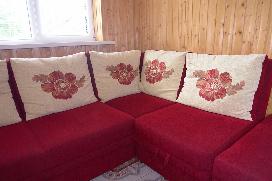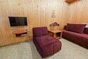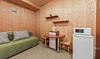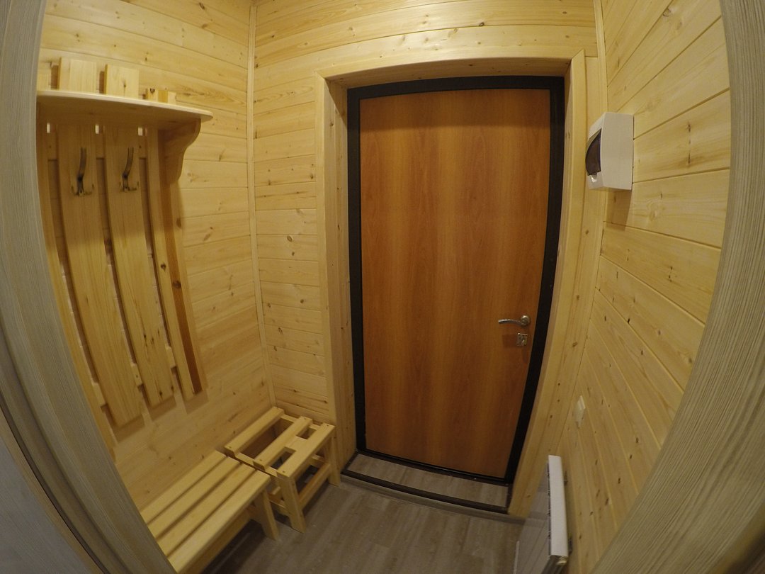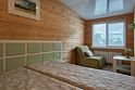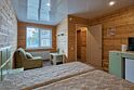 Номер с отдельным входом с улицы, по типу 1-комнатной квартиры (2-спальная кровать или 2 полутороспальные), дополнительное место (раскладное кресло-кровать), ТВ ЖК, журнальный столик, шкаф для одежды , обеденная зона (холодильник, эл. чайник, посуда, ). Ванная комната: душевая кабина, мойка, унитаз, эл. нагревательный бак для гор. воды, фен. Прихожая: стойка для лыж и сноубордов, вешалка для верхней одежды, зеркало.