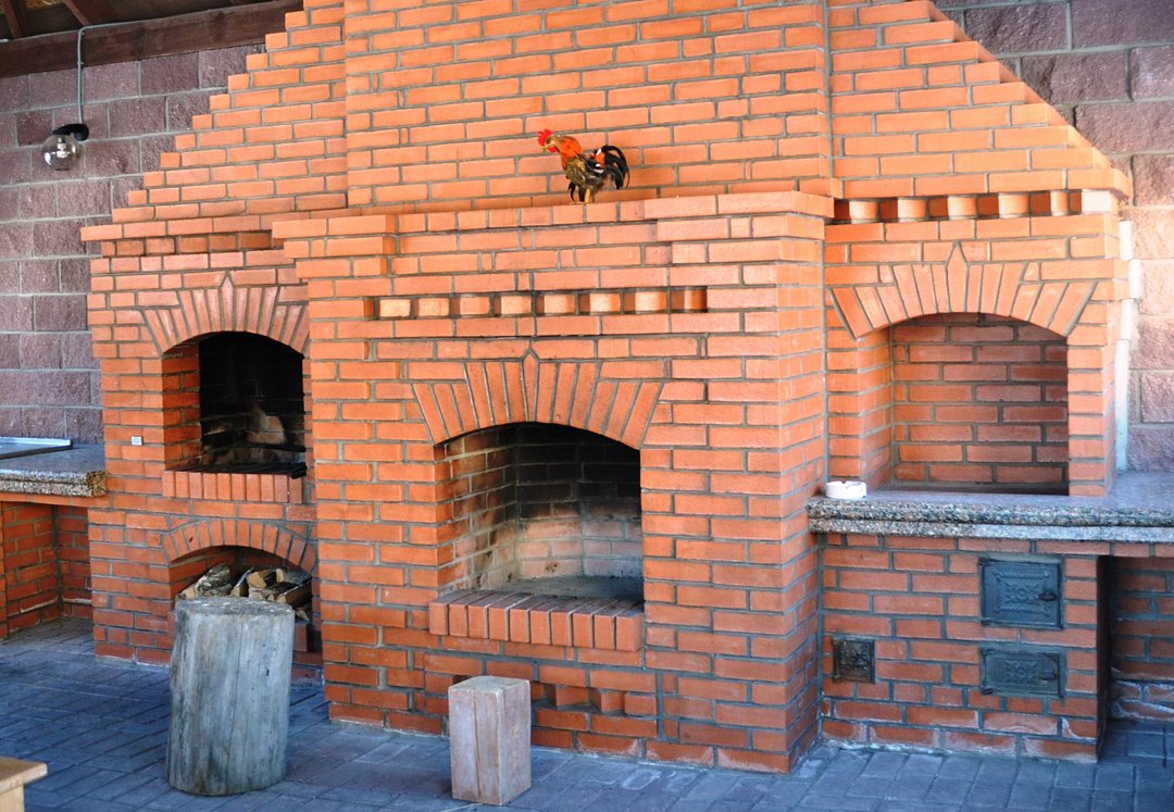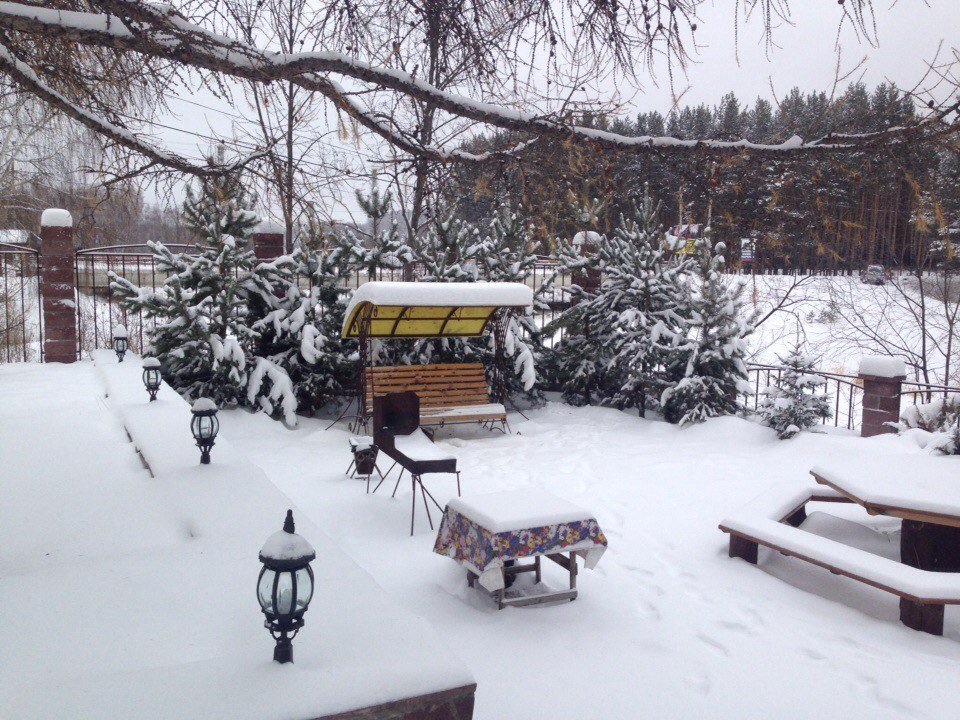 На территории гостевого дома есть беседка с камином и русской печью.