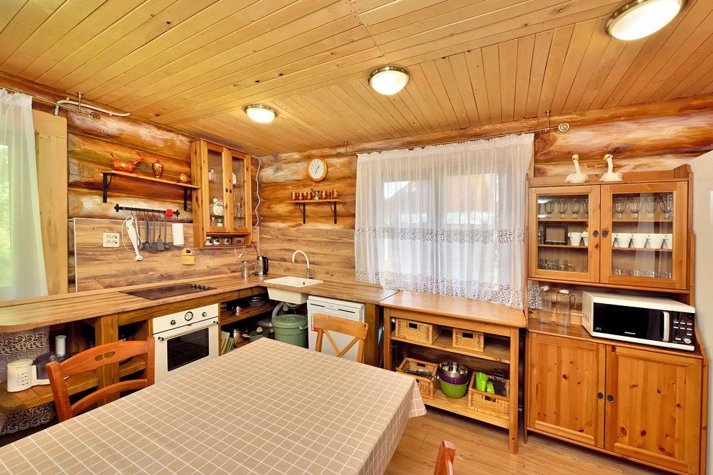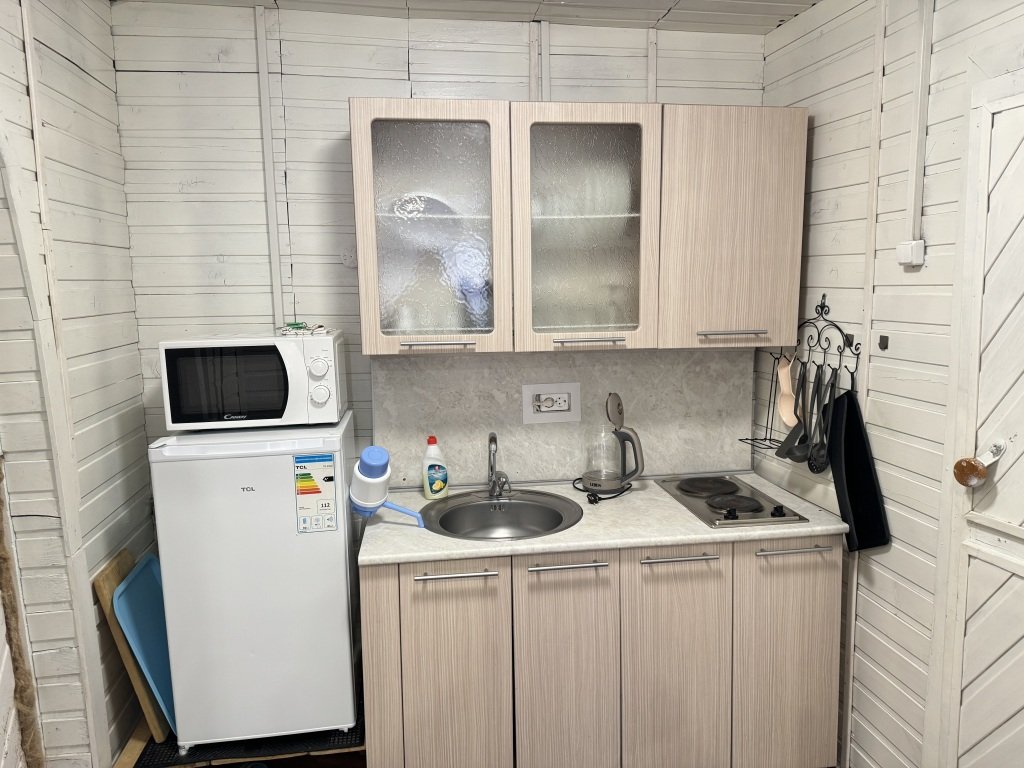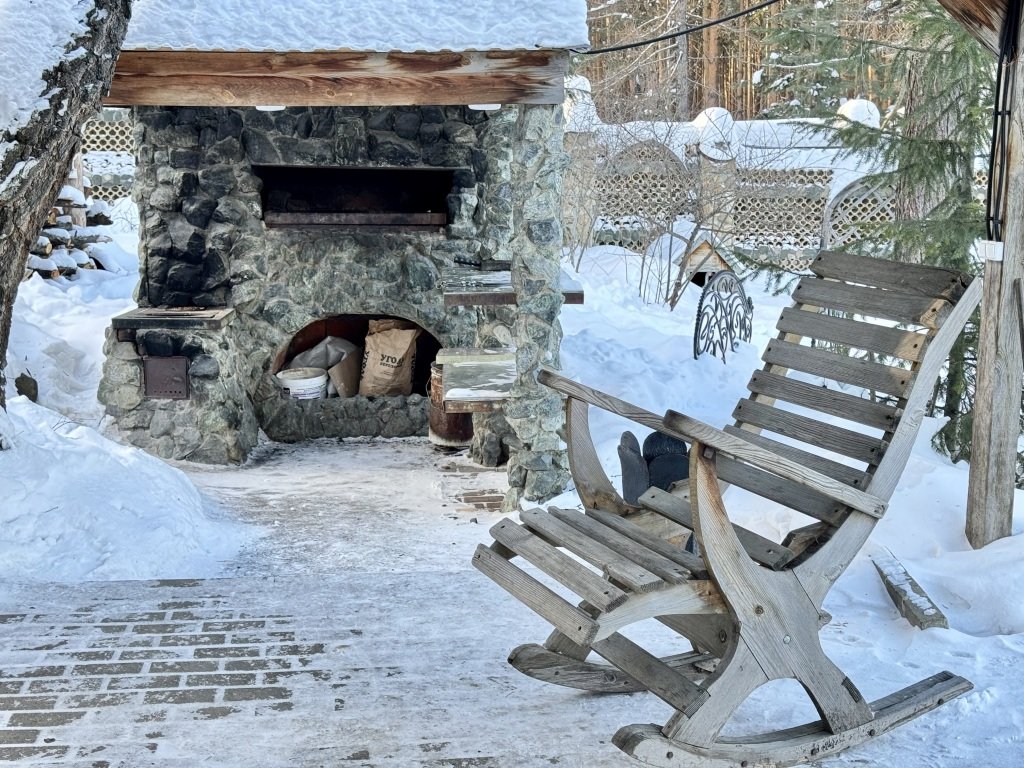 Третий домик (30 кв.м) рассчитан на 4 человек (2 осн. и 2 доп. места). Имеется действующая обычная печь, при этом сам дом отапливается газовым котлом. Территория — 6 соток, парковка на 2 машины, мангальная зона, беседка.