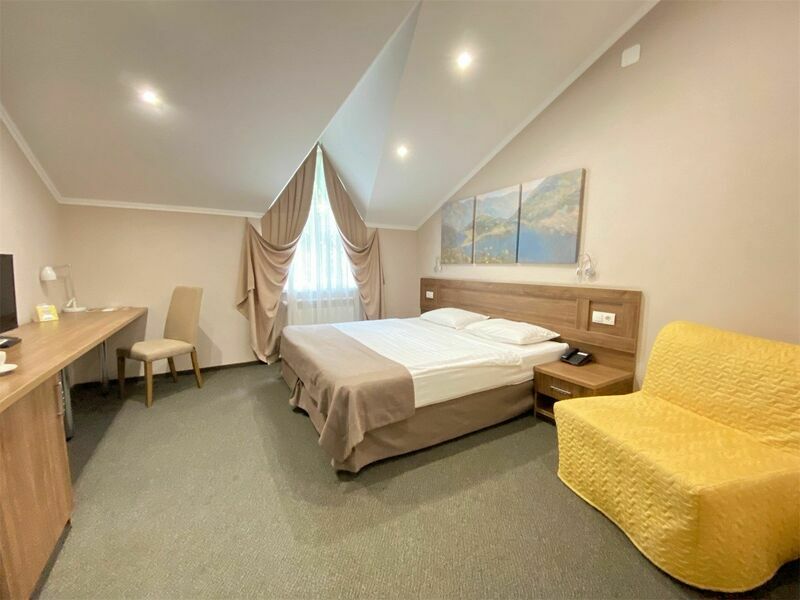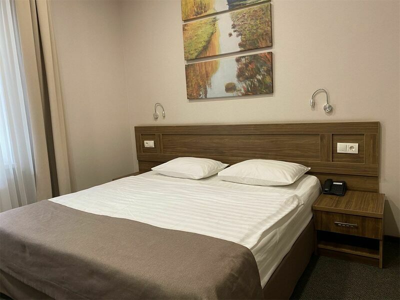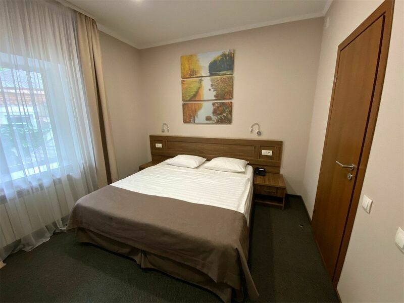 Трехэтажный корпус отеля разместился в глубине улицы Дубровского на закрытой охраняемой территории. Гостей ожидают двухместные номера категории Джуниор и Стандарт, в совокупности рассчитанные на размещение 44 человек. Номера оформлены в приятной пастельной гамме, в каждом имеется собственный санузел с душем, сплит-система и стандартный набор бытовой техники.