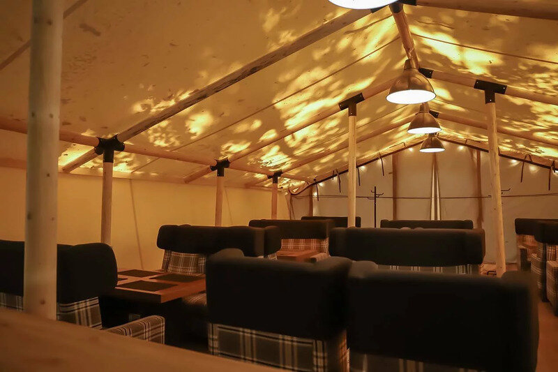 Семейный отдыхДостоинстваПриятное, атмосферное место. В ресторане можно вкусно поесть, а затем отправиться на озеро кататься на сапе. В домиках чистота и порядок, нет никаких насекомых, благодаря фумигатору. В шатре есть все необходимое, включая вентилятор. Постельное белье белоснежное и свежее. Отдых в лесу наполнил душу покоем и гармонией. Огромное спасибо за гостеприимство!