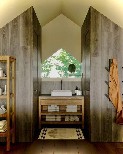 Расположиться гостям предлагается в уютных домах со всеми удобствами. Для хорошего и крепкого сна на природе подготовлена большая кровать. Собственный санузел оборудован водонагревателем, что обеспечивает постоянное наличие горячей воды. Также в каждом домике имеется мини-холодильник и электрический чайник. А на всей территории работает бесплатный Wi-Fi.