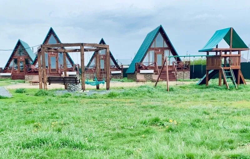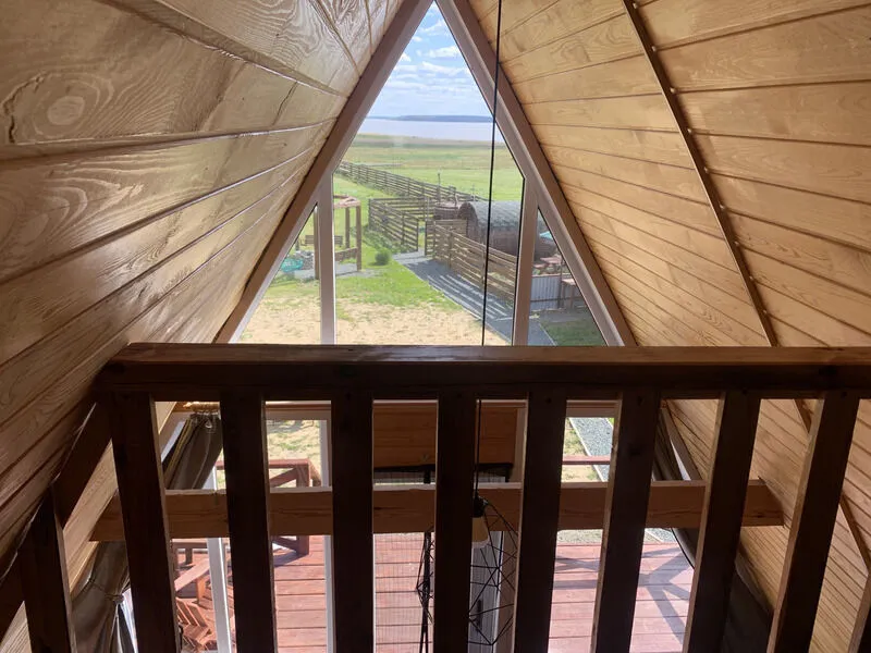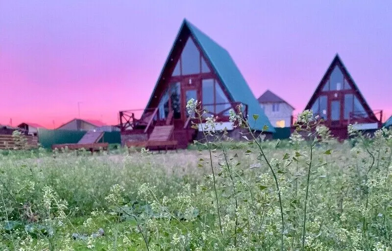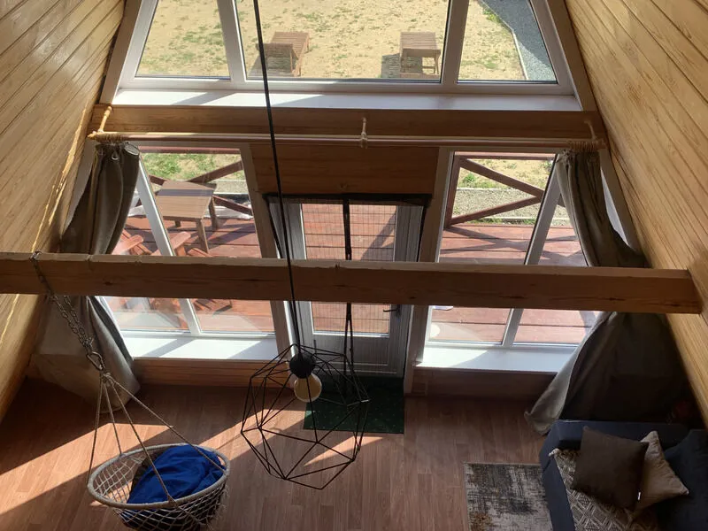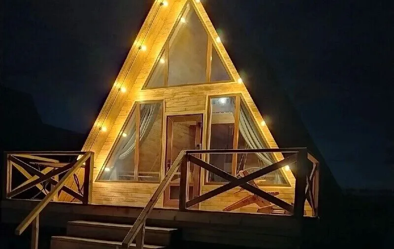Для размещения доступны уютные дома в стиле a-frame, каждый из которых разделен на два уровня. На втором уровне вас ждет удобная двуспальная кровать, а на первом —- просторная гостиная с раскладным диваном, подвесным креслом-гамаком, обеденной зоной и мини-кухней, оснащенной всем необходимым: плитой, чайником, микроволновой печью и холодильником. Домики оборудованы кондиционером, собственным санузлом и душем, а также феном. Постельное белье и полотенца предоставляются.