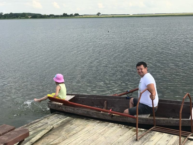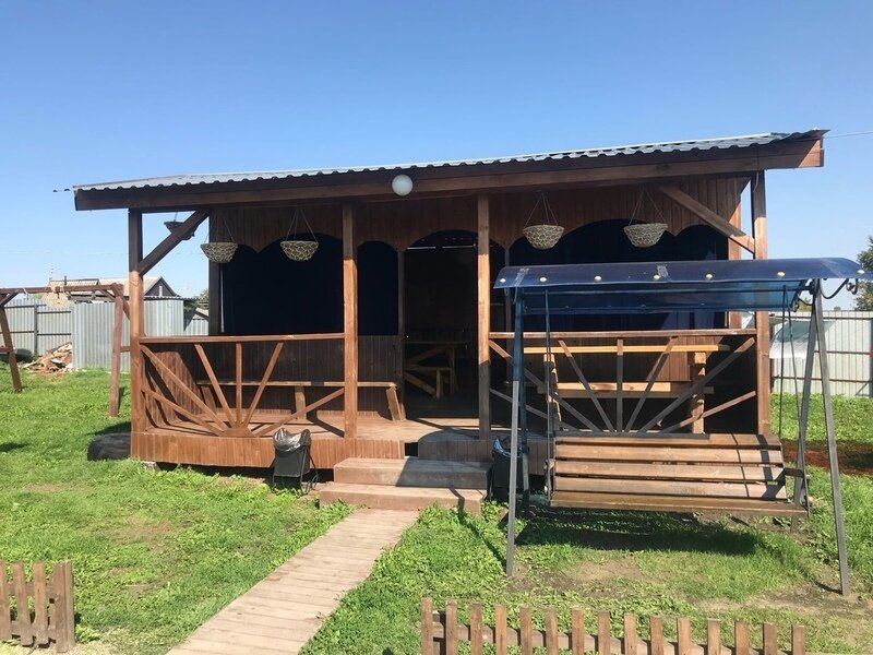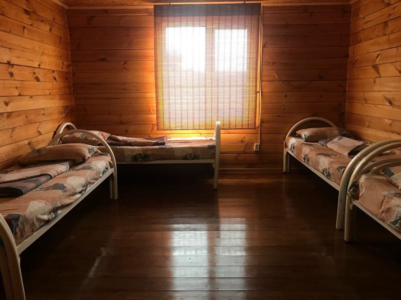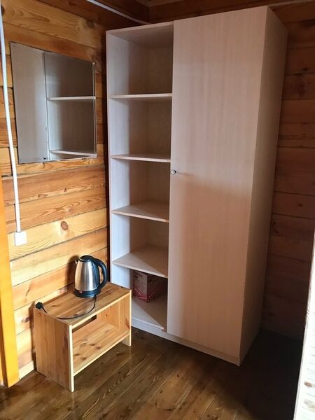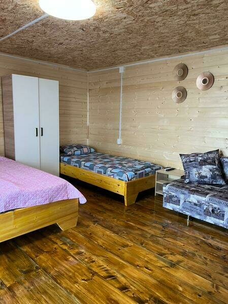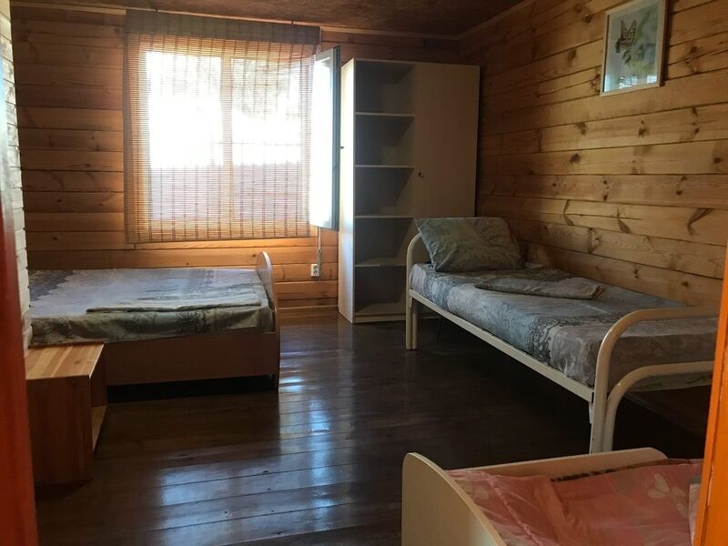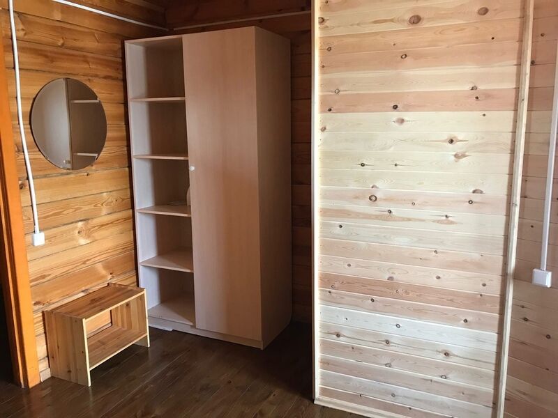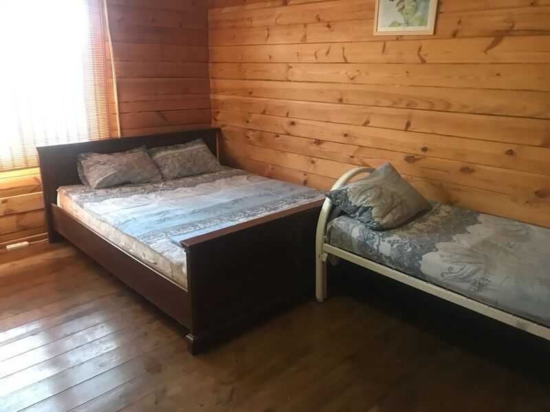 Комфортный двухэтажный деревянный коттедж, сдается каждый этаж отдельно, для каждого этажа отдельный вход. Вместимостью до 5 человек, включая детей. На каждом этаже есть все необходимое для комфортного проживания: двухспальная кровать, односпальная кровать, небольшой диван, кухня, душевая кабина и санузел с раковиной. Так же имеется терраса с садовой мебелью с видом на озеро.