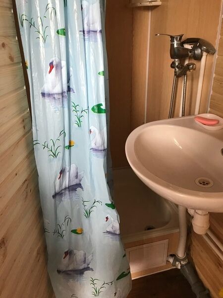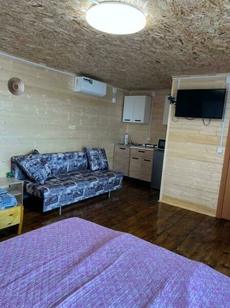 В домиках имеется двухспальная кровать, раскладывающийся диван, детская тахта. Атак же имеется мини-кухня и душ с горячей водой.