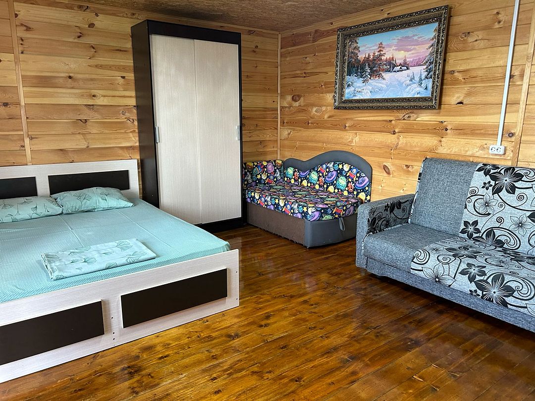 Администрация предлагает на выбор 6 домов с вместимостьи от трех до семи. В каждом доме имеется все необходимое комфортного проживания. На территории гостевого комплекса имеется: общая кухня для самостоятельного приготовления пищи, костровая зона, столовая. Для детей имеется детская площадка и батут.