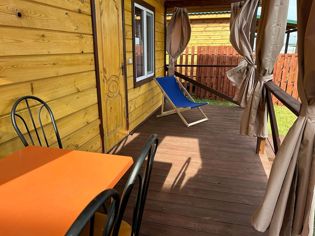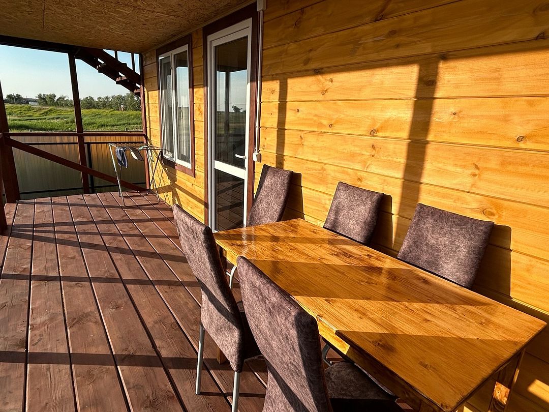 В данном доме располагается мини кухня, большая открытая терраса с видом на соленое озеро, 5 спальных мест.
