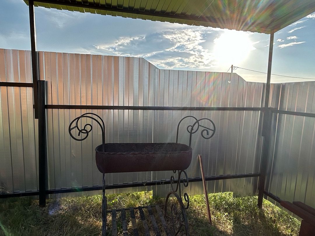 Расположен на первой линии, до соленого озера примерно 50 метров, на территории детская площадка, батут, мангальная зона, своя открытая терраса, мини кухня в домике, холодильник, микроволновка, чайник, плитка на 2 конфорки, минимальный набор посуды