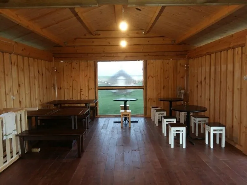 Площадка кемпинга разделена на две зоны — зона с домиками и просторная часть для палаток (палаточный городок). В каждой зоне есть свои удобства. Гости, проживающие в палатках, не могут посещать зону с домиками.