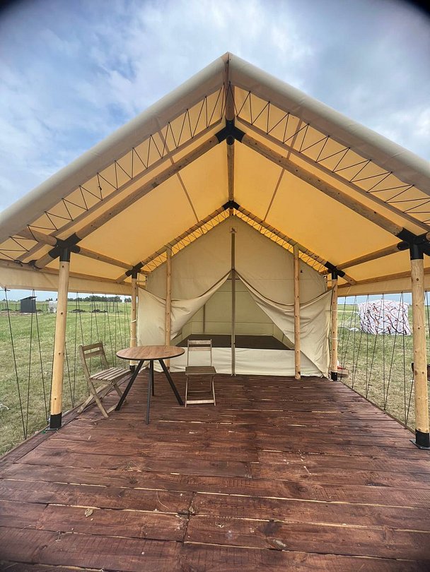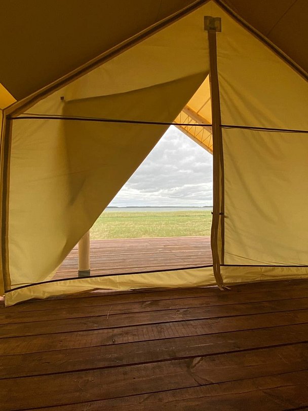 Гостям предлагается уютное размещение на любой вкус: 2 комфортабельных сафари-тента с собственным туалетом, раковиной и душем и сафари-тент без удобств — бюджетный вариант для тех, кто предпочитает близость к природе и готов пользоваться общими удобствами на территории глэмпинга. Для тех, кому необходимо максимальное единение с природой, предлагается размещение собственной палатки на берегу озера. Туристам кемпинга предоставляется доступ к воде, туалету и душу.