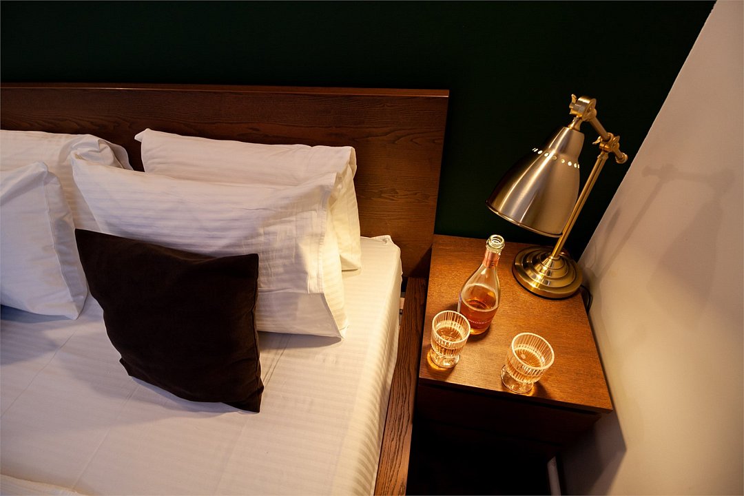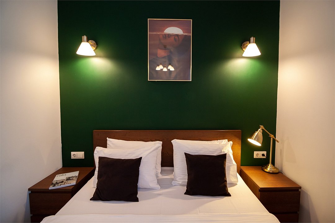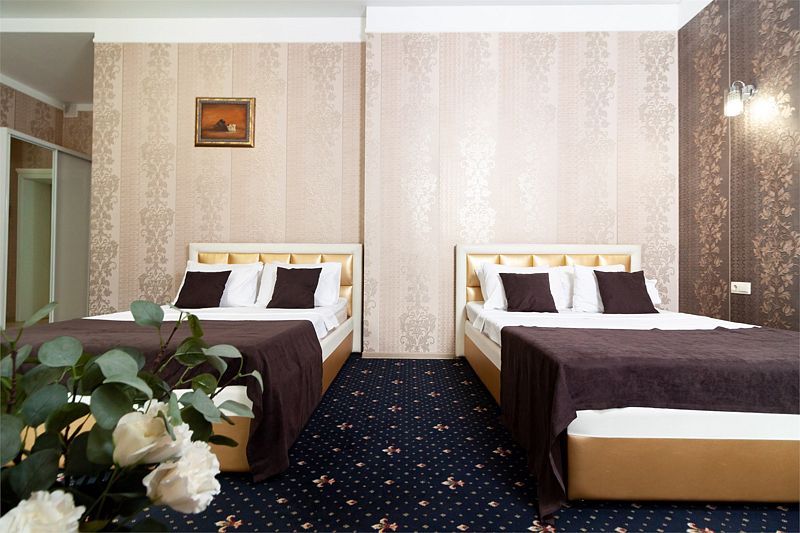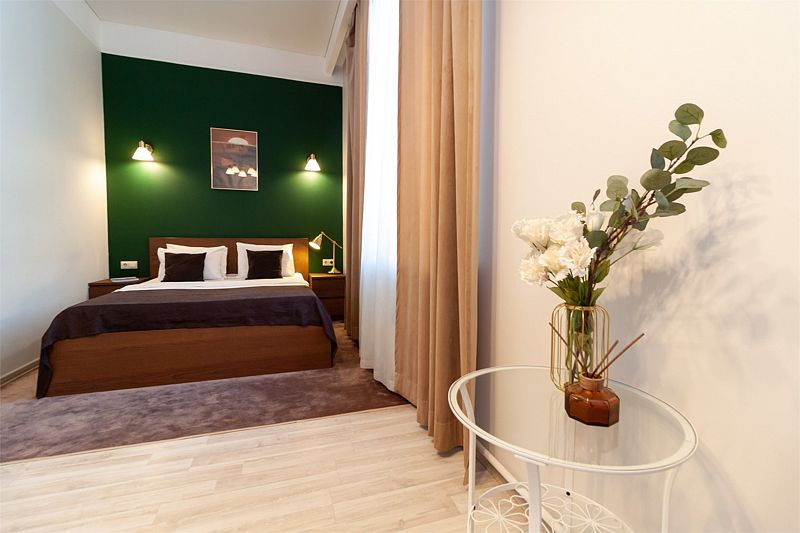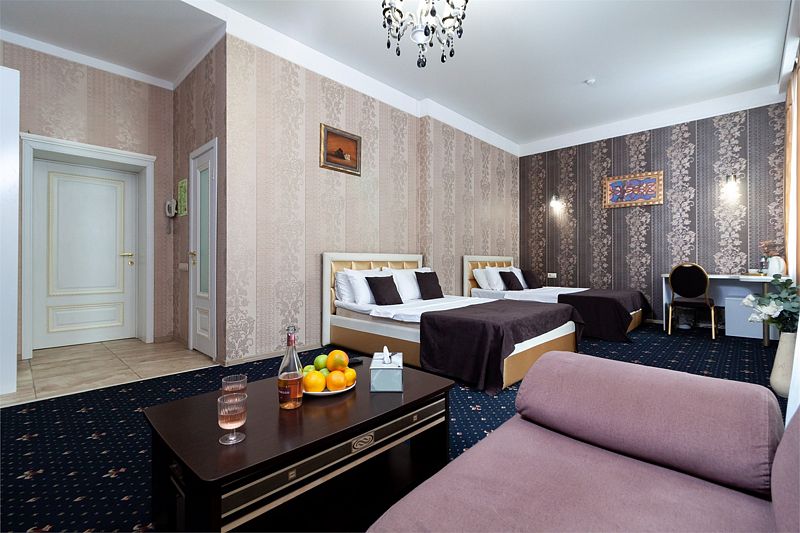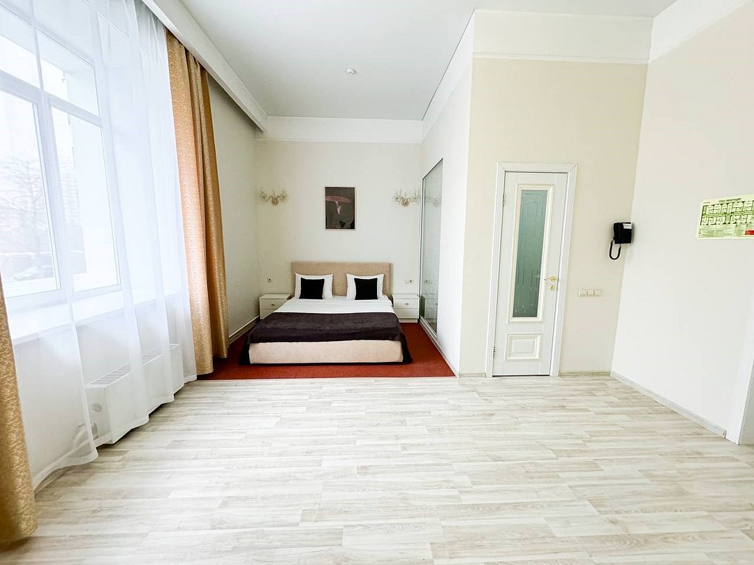 Небольшое трехэтажное здание отеля разместилось в тихом, спокойном дворе. Гостей ожидают 13 комфортабельных двухместных номеров категории Стандарт, Полулюкс, Люкс. В номерах удобная, функциональная мебель светлых оттенков, есть телевизор, фен, мини-холодильник, ванная комната с душевой.