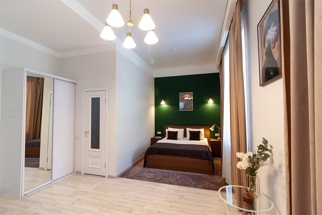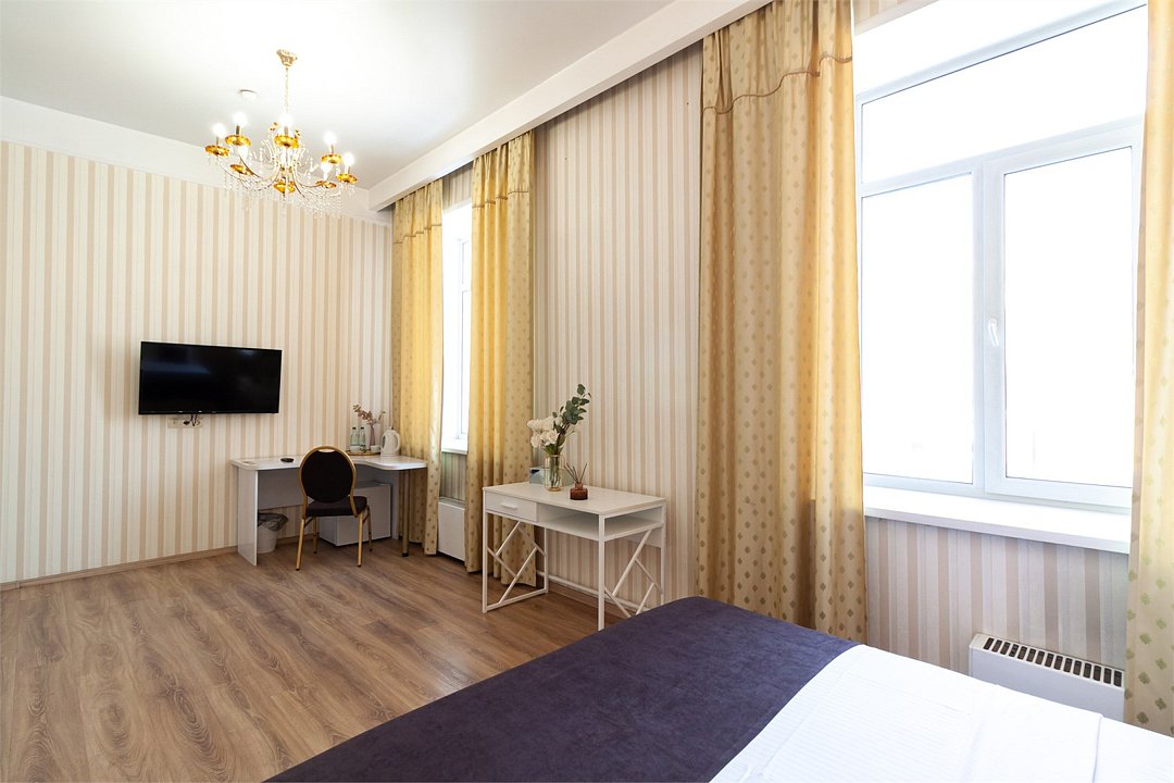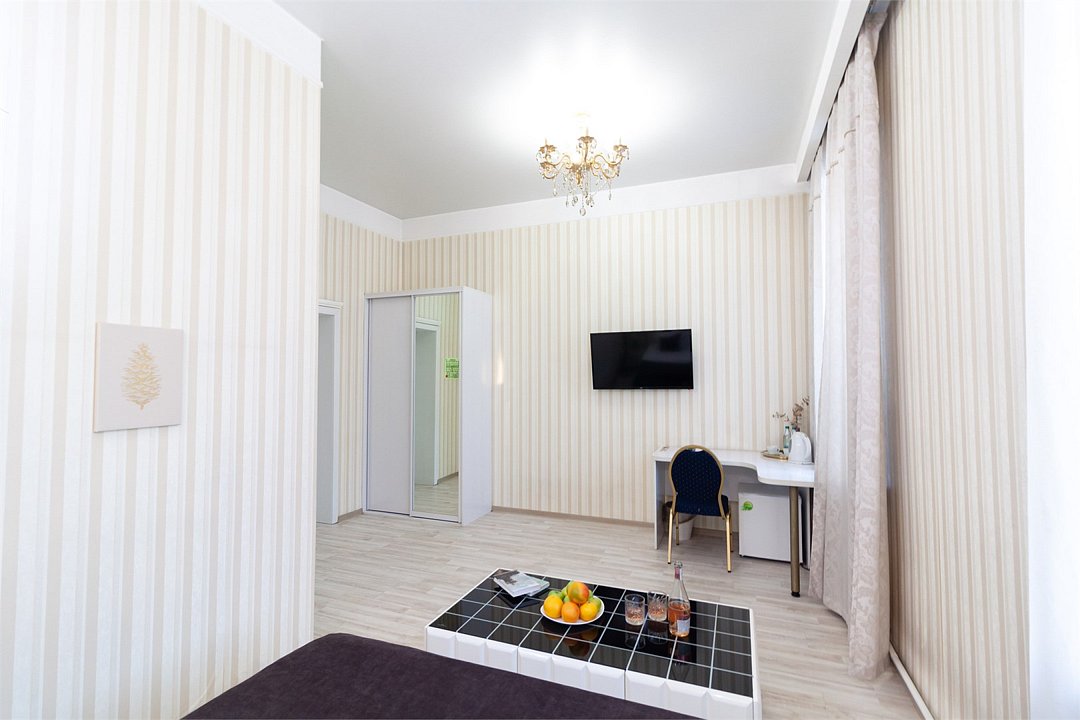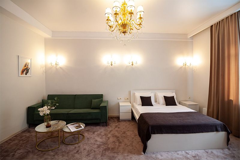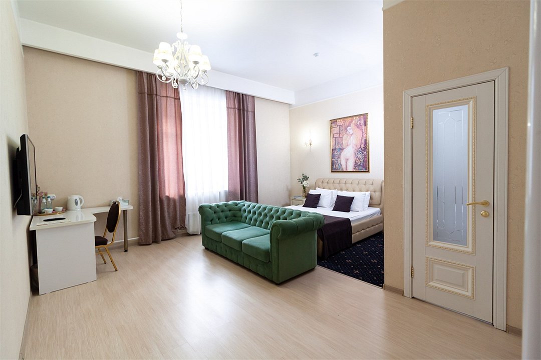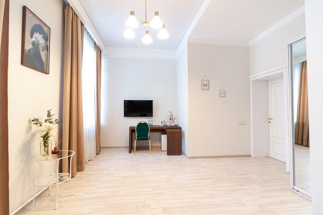 Атмосфера элегантности и уюта просторный номер площадью 32 кв.м. Высокие потолки, создающие атмосферу свободы и уютаУслуги и удобства