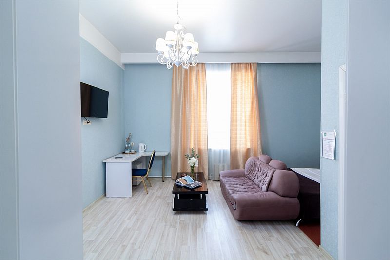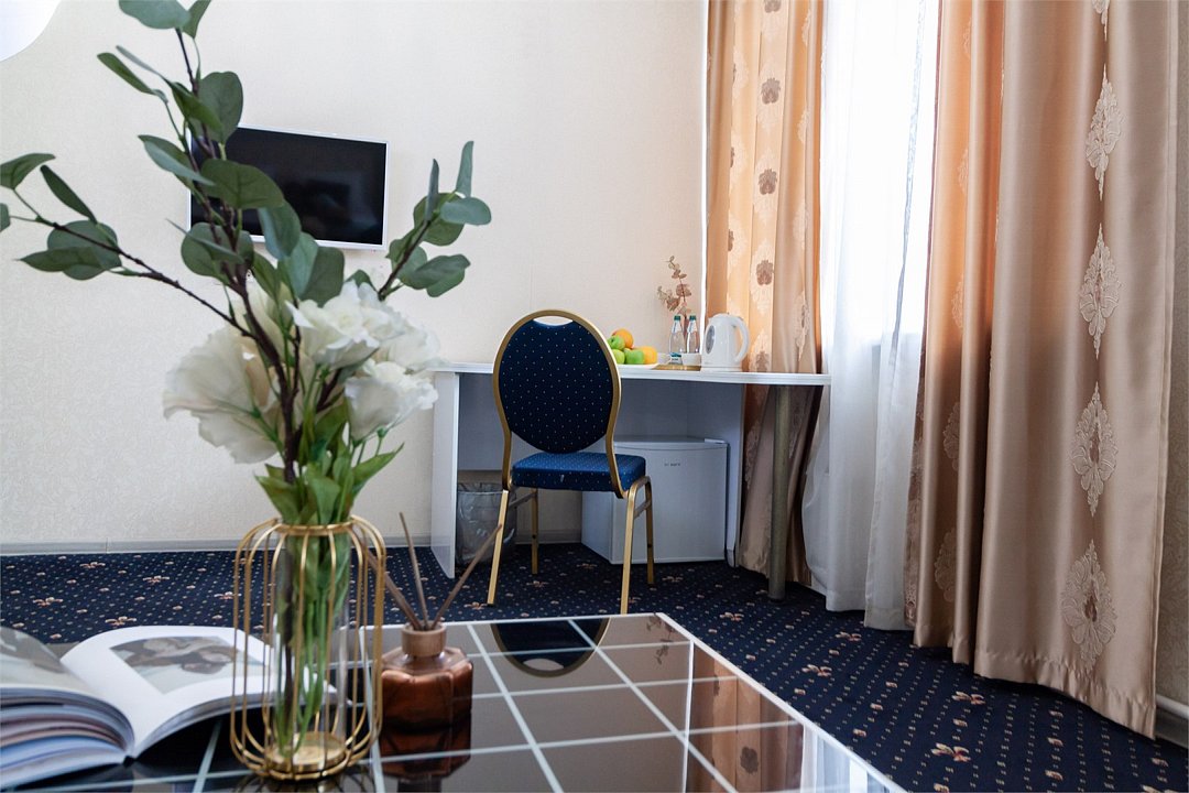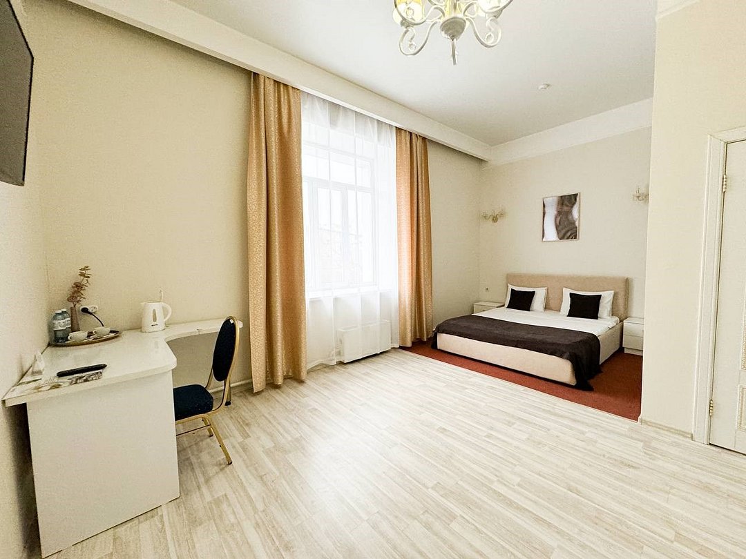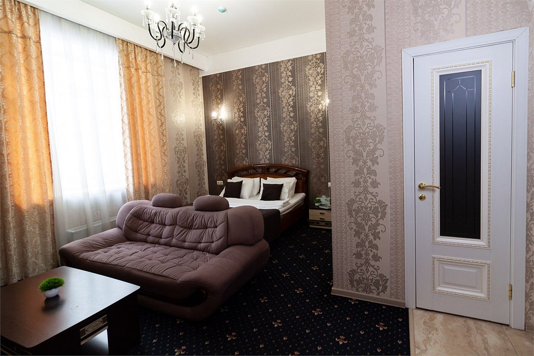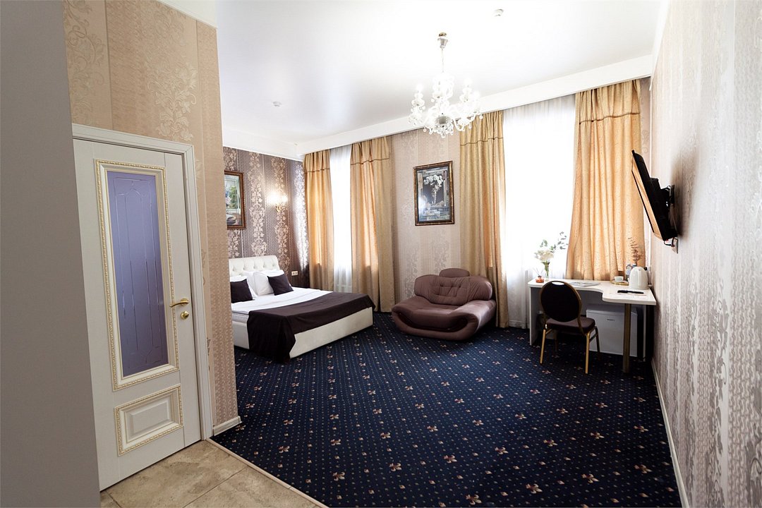 Путешествие с паройРекомендую данный отель для проживания. Соответствует описанию на сайтеБыли парой в номере комфорт. Сам отель внутри очень красивый, ухоженный, приветливый персонал. Номер уютный, тёплый, комфортный. В номере большая двуспальная кровать, с удобным матрасом, что очень важно, диван, столик, стол, шкаф, стул, телевизор. Ванная комната просторная, чистая, есть шампунь, гель для душа. На каждого человека халат, 3 полотенца, тапочки, зубные принадлежности. Нам понравилось.