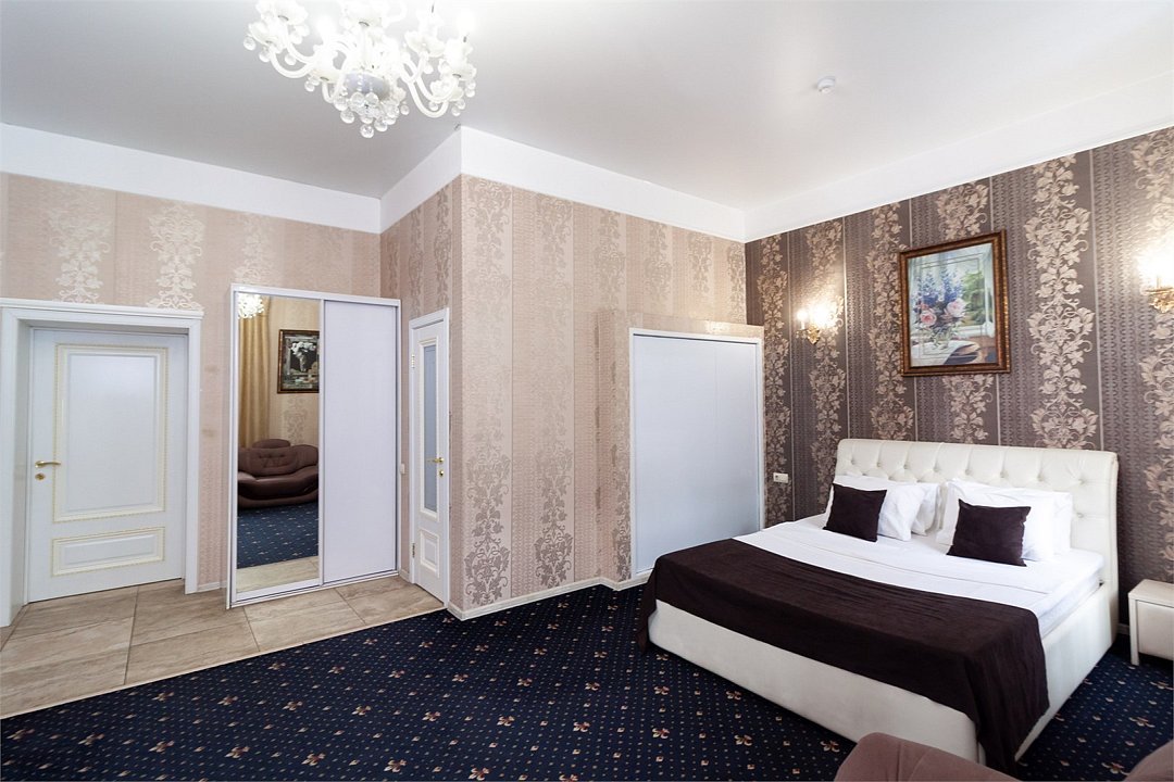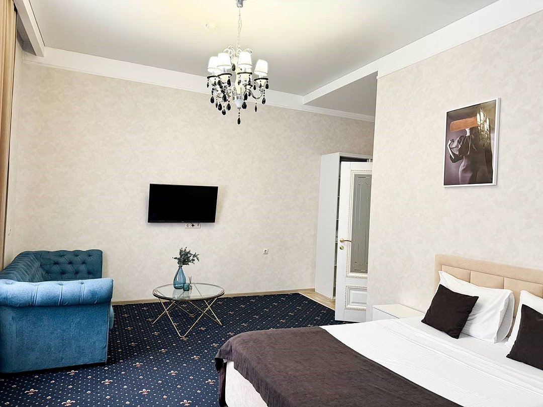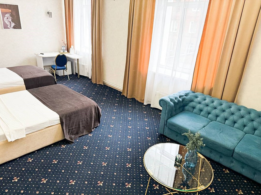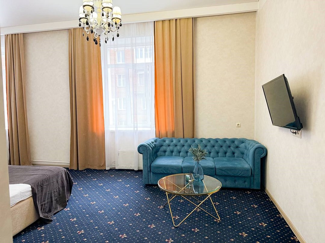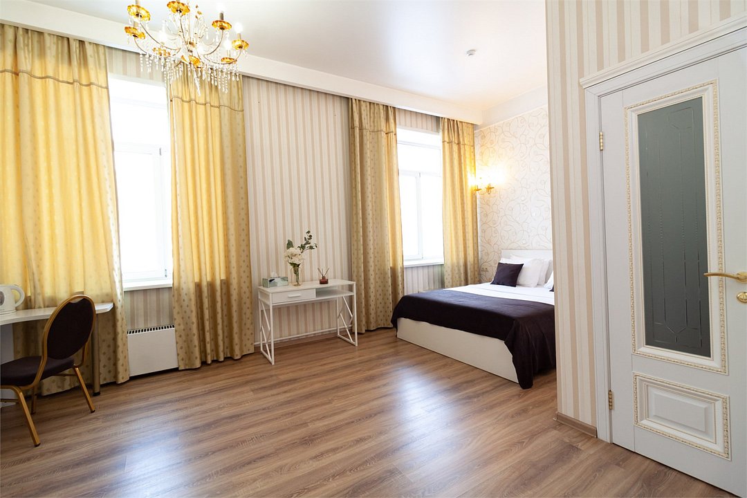 Путешествие с паройРекомендую данный отель для проживания. Соответствует описанию на сайтеБыли парой в номере комфорт. Сам отель внутри очень красивый, ухоженный, приветливый персонал. Номер уютный, тёплый, комфортный. В номере большая двуспальная кровать, с удобным матрасом, что очень важно, диван, столик, стол, шкаф, стул, телевизор. Ванная комната просторная, чистая, есть шампунь, гель для душа. На каждого человека халат, 3 полотенца, тапочки, зубные принадлежности. Нам понравилось.