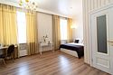 классический стиль интерьера высокие потолки просторный номер площадью 24 кв.м. удобная двуспальная кроватьУслуги и удобства