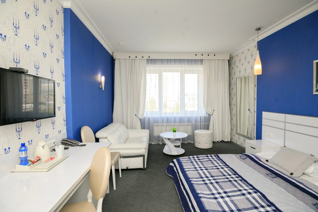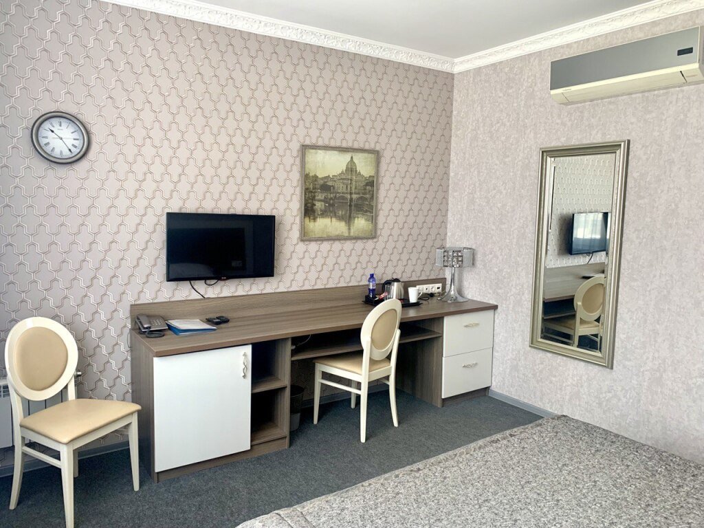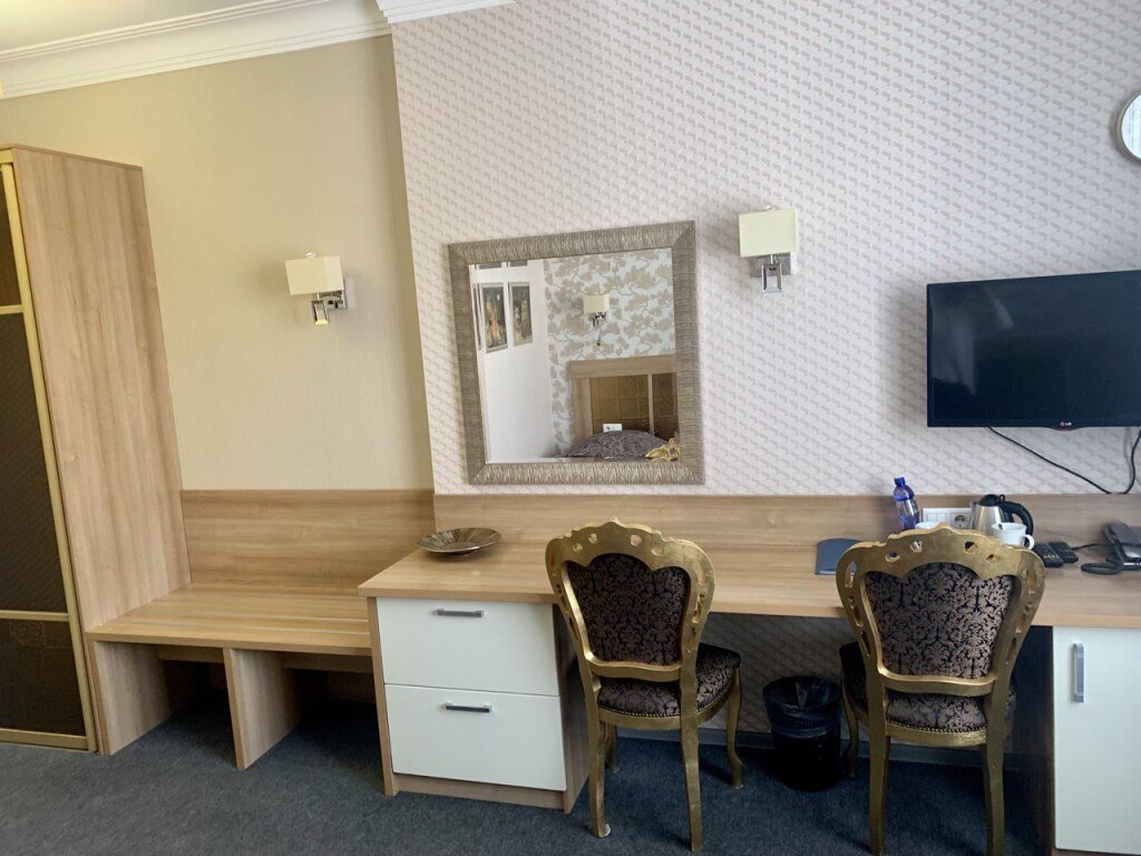 Номер уютно обставлен и оснащён необходимым, чтобы отдохнуть после долгого и насыщенного дня. Имеются телевизор и халат. Перечисленные услуги есть не во всех номерах.