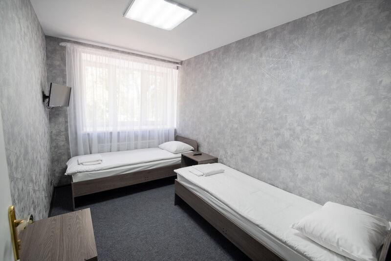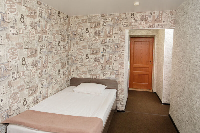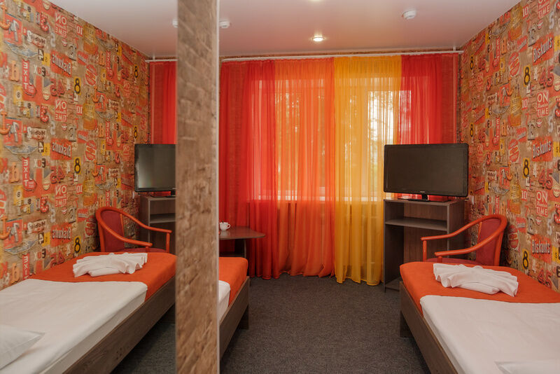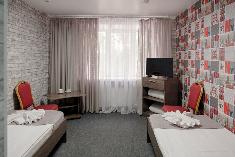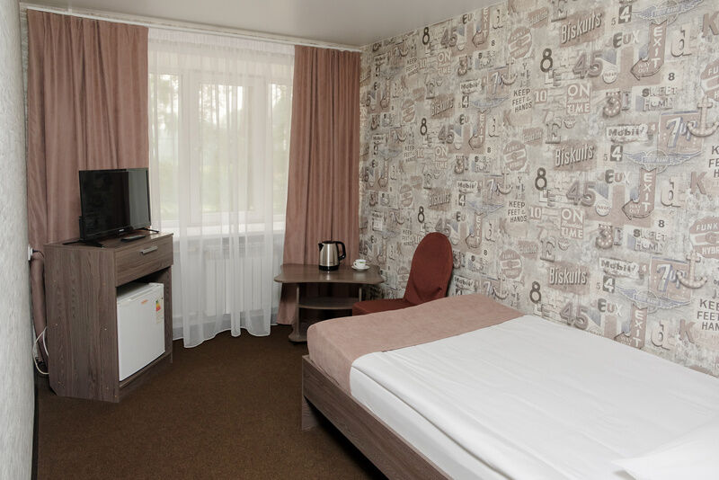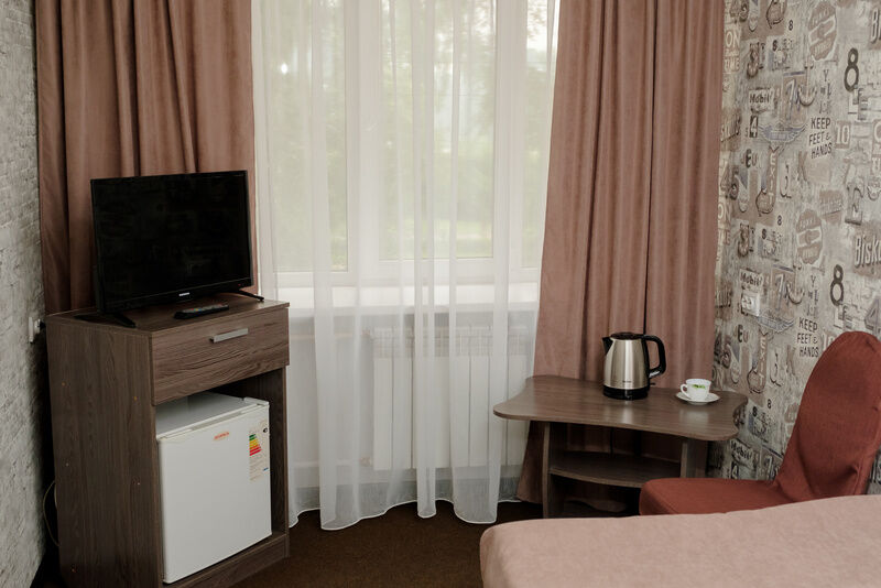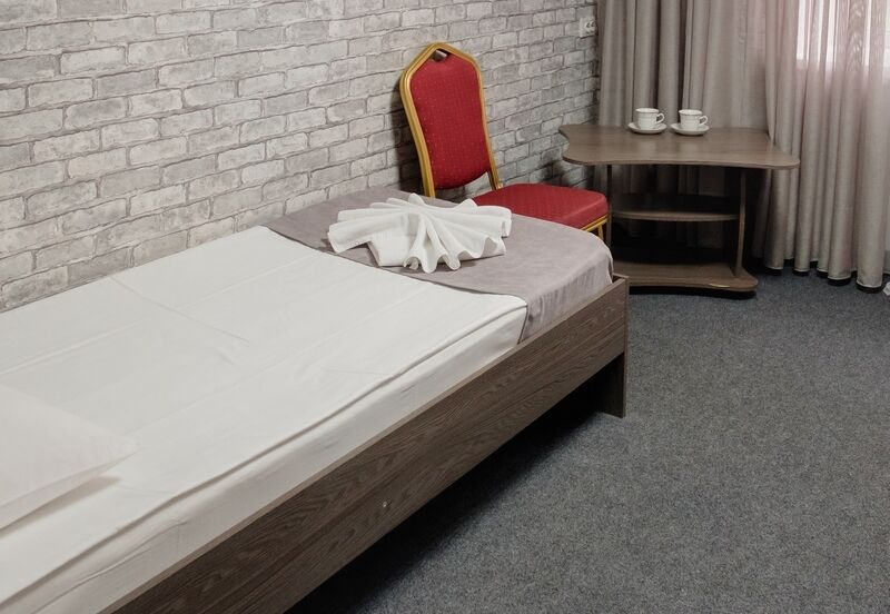 Путешествие в одиночкуСССР жив!Я взяла на одну ночь номер за 1000 рублей.стандарт.на четвёртом этаже.чисто,но не уютно.выход окон на дорогу.если вы спите не чутко, то вам не помешают грохот трамваев и гул машин.ощущение города))) в номере кровать,телевизор, совдеп холодильник, журнальный столик,стул,туалет и ванна.ванна и унитаз чистые ,не вызывают брезгливости. Есть зеркала.свет тусклый.в жару на улице 33 градуса и с открытым одном,конечно все равно душно, но пережить ночь можно. Телевизор не работал,но на ресепшене канала,принесли другой,который ловит много каналов.утюг и гладильная доска в свободном доступе на втором этаже в коридоре.поужинала в кафе на первом этаже.вкусно,относительно недорого. Картофельное пюре,котлета, салат оливье и чай= 200 рублей.завтрак включён, фуршет.попробую завтра.сказали,каши на выбор и блины будут.поставила пятёрку, так как на ресепшене работают отзывчивые и понимающие девушки.приятно с такими общаться.обо все можно договориться.в номере,кстати,мыло,гель для душа,одно маленькое и одно большое полотенце, чайник,стакан и кружка.розетка правда двойная, но толтко за холодильником в одном месте.мне для уюта не хватало коврика при кровати.через дорогу огромный парк.погулять и посидеть отдохнуть.не грязно.в шаговой доступности есть все.магазины,сбербанк,аптеки,кафе "Покушай у Ксюши", там много чего есть поесть,попить и дёшево!с улицы в этом ж кафе продают вкусные разнообразные пирожки.