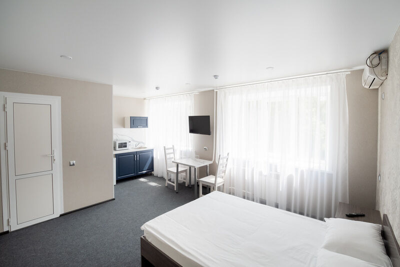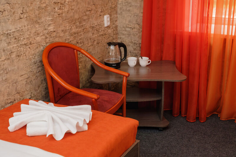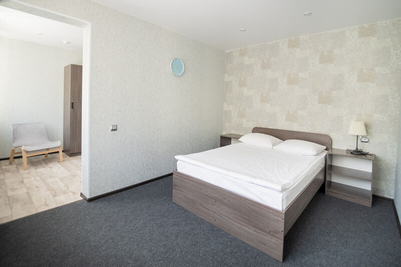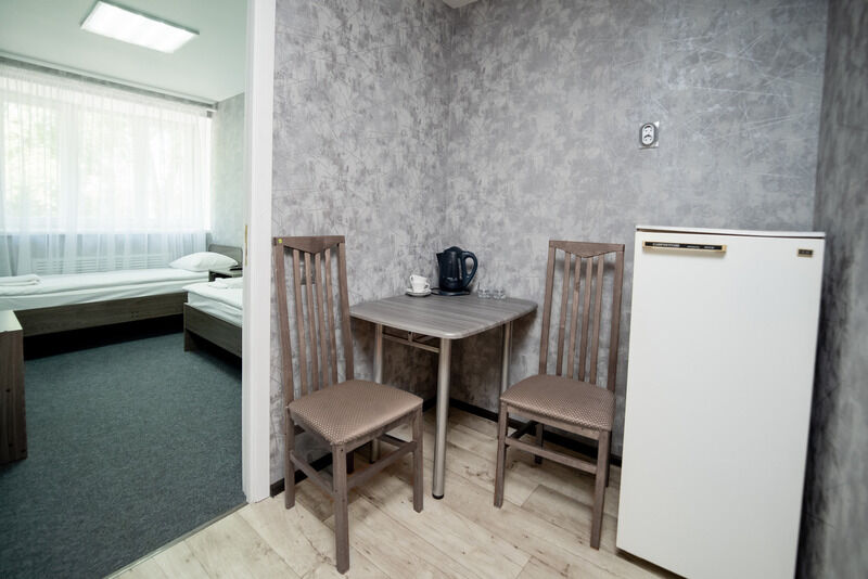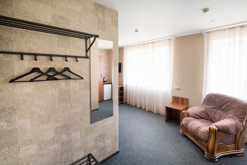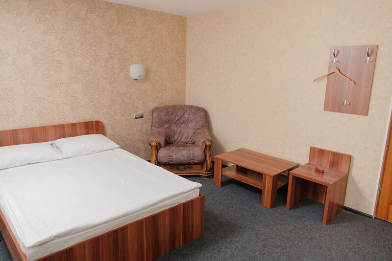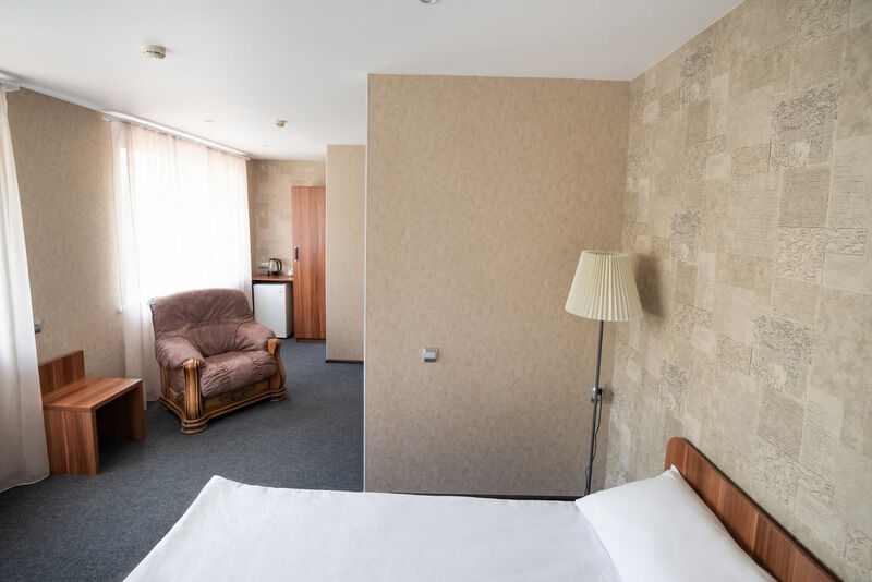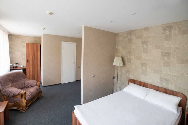 Путешествие в одиночкуСССР жив!Я взяла на одну ночь номер за 1000 рублей.стандарт.на четвёртом этаже.чисто,но не уютно.выход окон на дорогу.если вы спите не чутко, то вам не помешают грохот трамваев и гул машин.ощущение города))) в номере кровать,телевизор, совдеп холодильник, журнальный столик,стул,туалет и ванна.ванна и унитаз чистые ,не вызывают брезгливости. Есть зеркала.свет тусклый.в жару на улице 33 градуса и с открытым одном,конечно все равно душно, но пережить ночь можно. Телевизор не работал,но на ресепшене канала,принесли другой,который ловит много каналов.утюг и гладильная доска в свободном доступе на втором этаже в коридоре.поужинала в кафе на первом этаже.вкусно,относительно недорого. Картофельное пюре,котлета, салат оливье и чай= 200 рублей.завтрак включён, фуршет.попробую завтра.сказали,каши на выбор и блины будут.поставила пятёрку, так как на ресепшене работают отзывчивые и понимающие девушки.приятно с такими общаться.обо все можно договориться.в номере,кстати,мыло,гель для душа,одно маленькое и одно большое полотенце, чайник,стакан и кружка.розетка правда двойная, но толтко за холодильником в одном месте.мне для уюта не хватало коврика при кровати.через дорогу огромный парк.погулять и посидеть отдохнуть.не грязно.в шаговой доступности есть все.магазины,сбербанк,аптеки,кафе "Покушай у Ксюши", там много чего есть поесть,попить и дёшево!с улицы в этом ж кафе продают вкусные разнообразные пирожки.