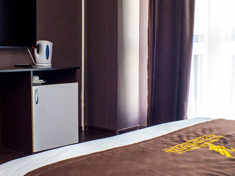 Отель с круглосуточной стойкой регистрации располагается в современном 14-ти этажном здании, оборудованном лифтом. Гостей ожидают номера категории Стандарт, Улучшенный, Полулюкс, Люкс. Интерьеры выдержаны в приятной цветовой гамме, комнаты хорошо меблированы, в каждом номере есть душевая кабина и необходимая бытовая техника — телевизор-ЖК, электрочайник, фен.