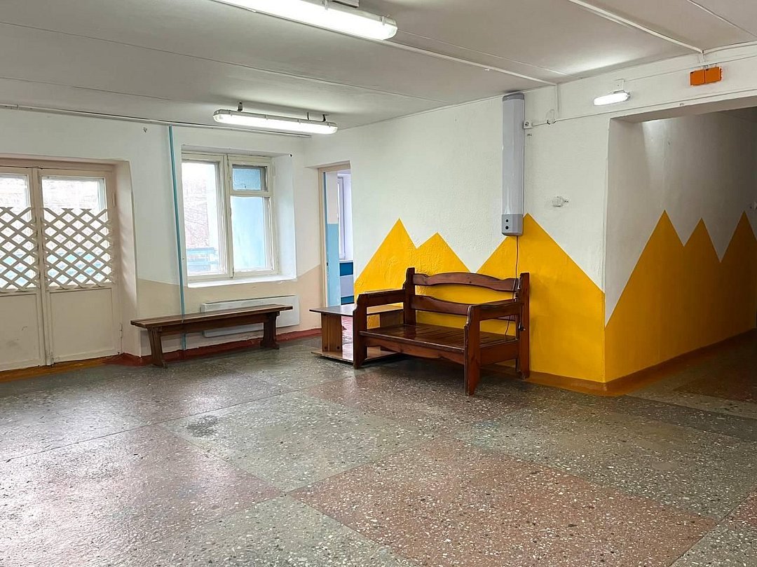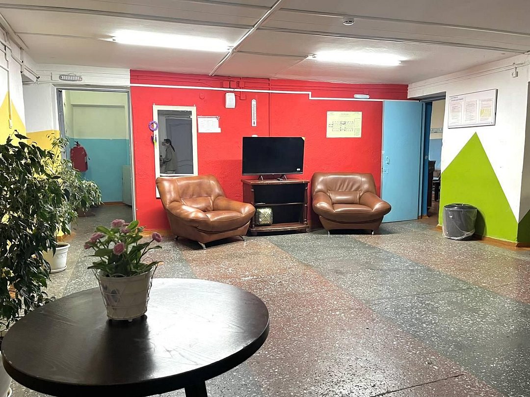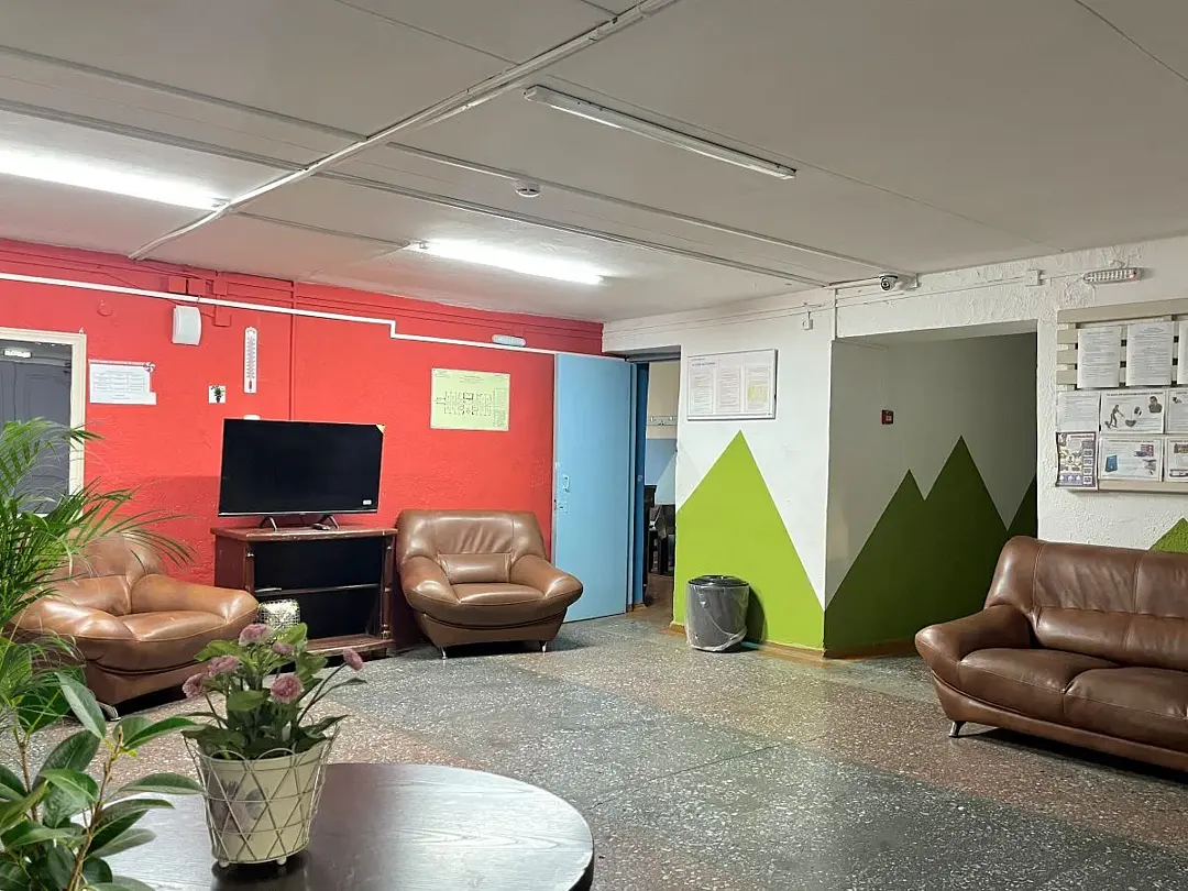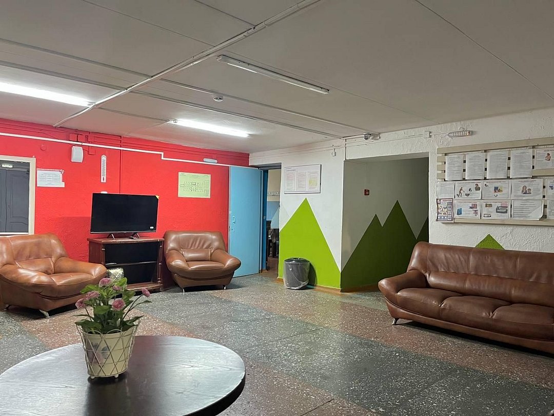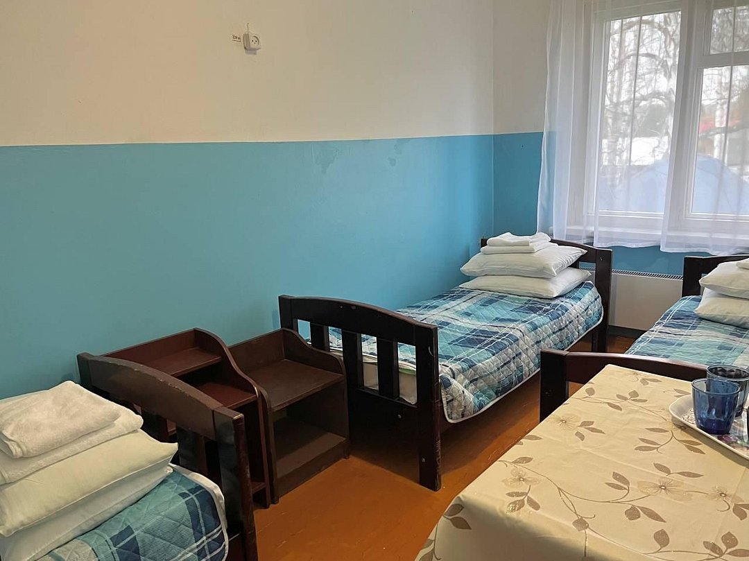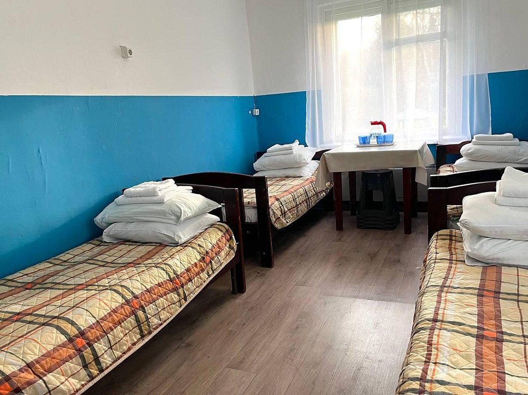 В номере одна односпальная кровать и одна двухъярусная, стол, табуреты и тумбочки по количеству кроватей, шкаф с полками, вешалка настенная. Туалет и душ на этаже.