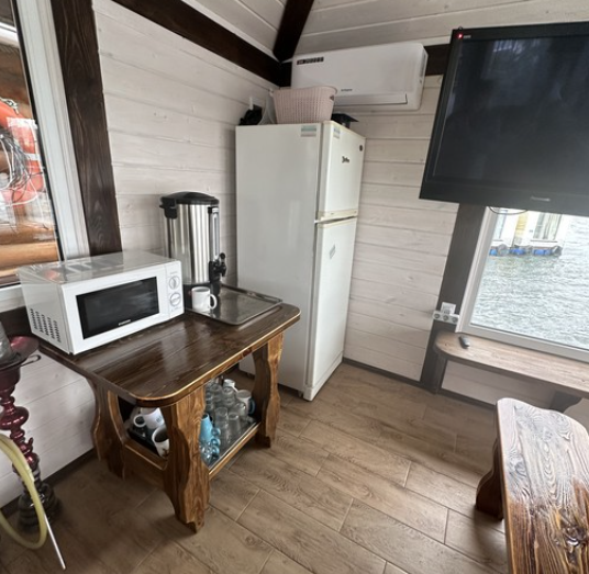 Беседка №5 с отоплением, кондиционером, бойлером с горячей водой, холодильником, телевизором. Имеется караоке и мангальная зона . Беседка рассчитана до 35 человек.