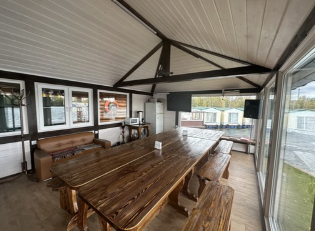 Размещение до 50 человек. Предназначена для проведения банкетов, свадеб, праздников. В ней кондиционер ,холодильник, чайник, кулер с питьевой водой и рядом мангальная зона.