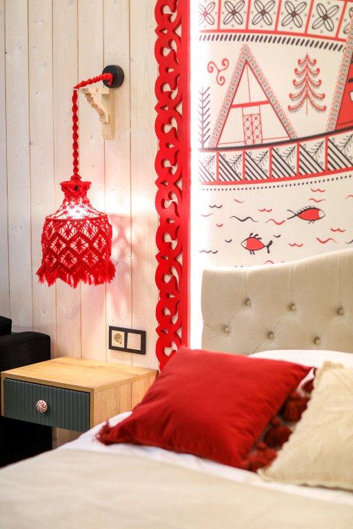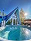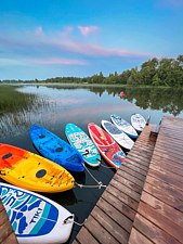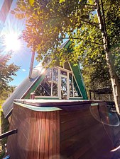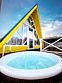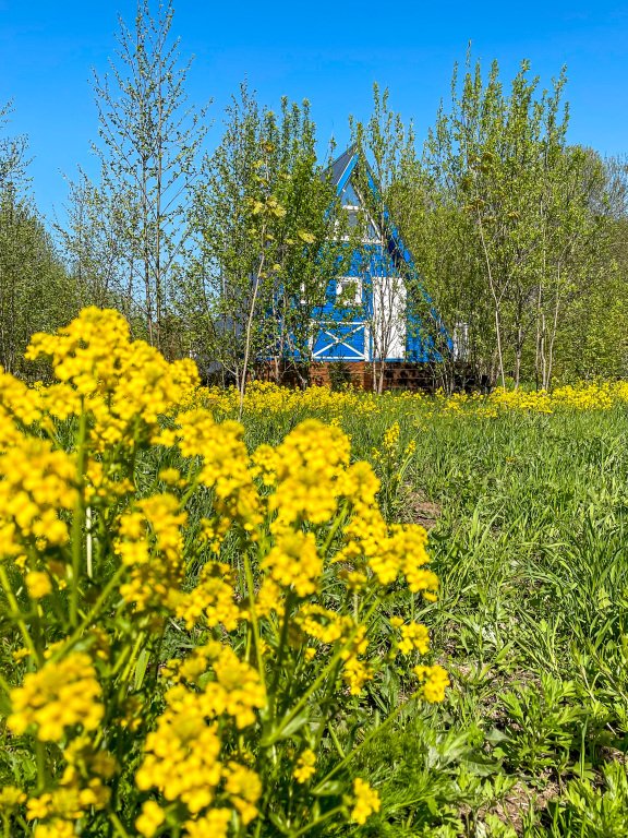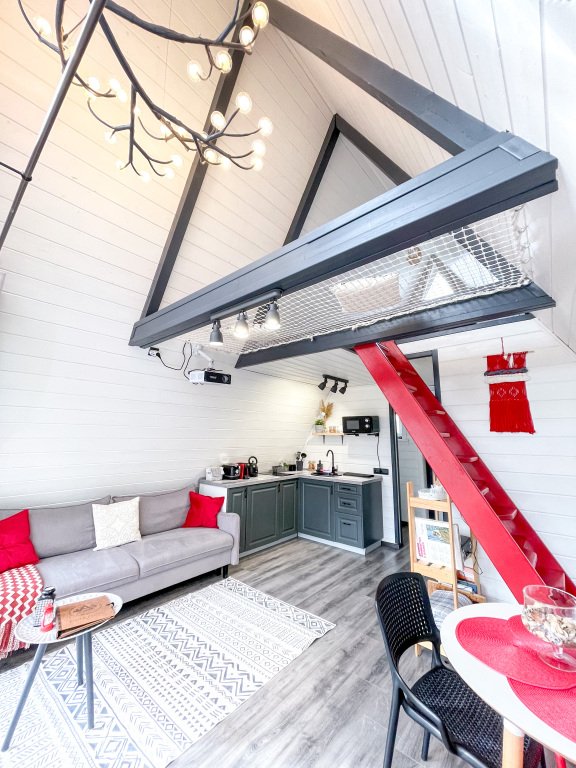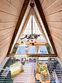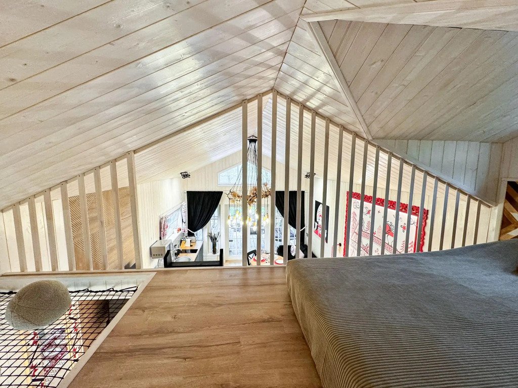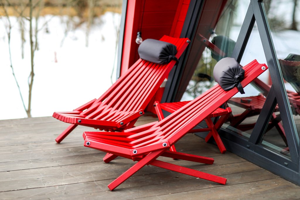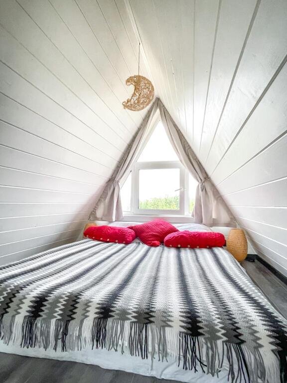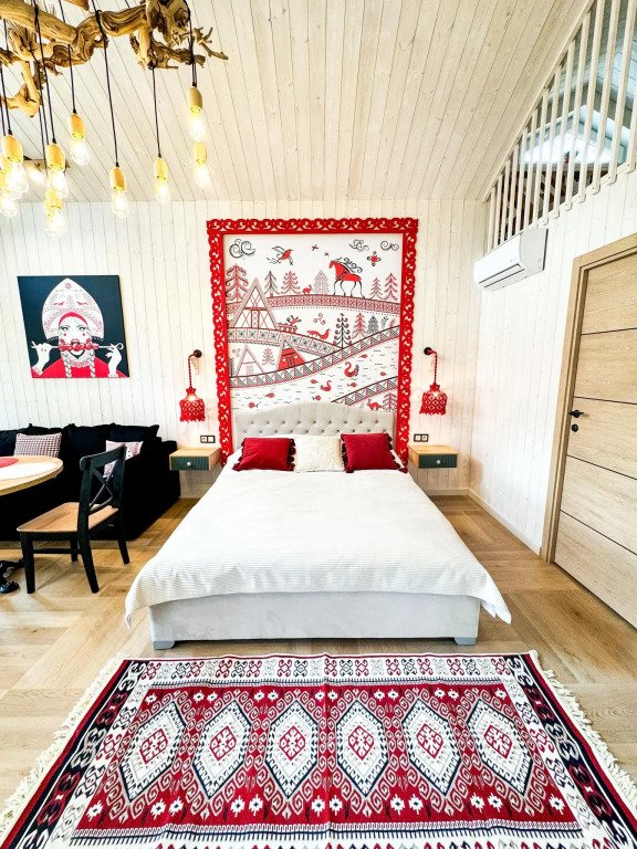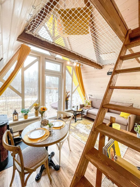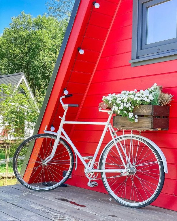 На территории в 1,5 гектара расположился уникальный комплекс для отдыха круглый год: 9 треугольных А-фрейм домов и 4 современных этнодомика в русском стиле, стоящие прямо у воды. Каждый дом отличается цветом и уникальным интерьером.