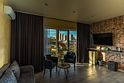 Двухкомнатный люкс с огромной кроватью 2мя санузлами и великолепным видом на море и горы. Выход из номера к персональной террасе с уютным двориком, зоной отдыха, бассейном. Для вашего комфортного пребывания есть все необходимое: кухонный островок, обеденная зона, ТВ зона с камином, сейф, роскошный диван.Услуги и удобства