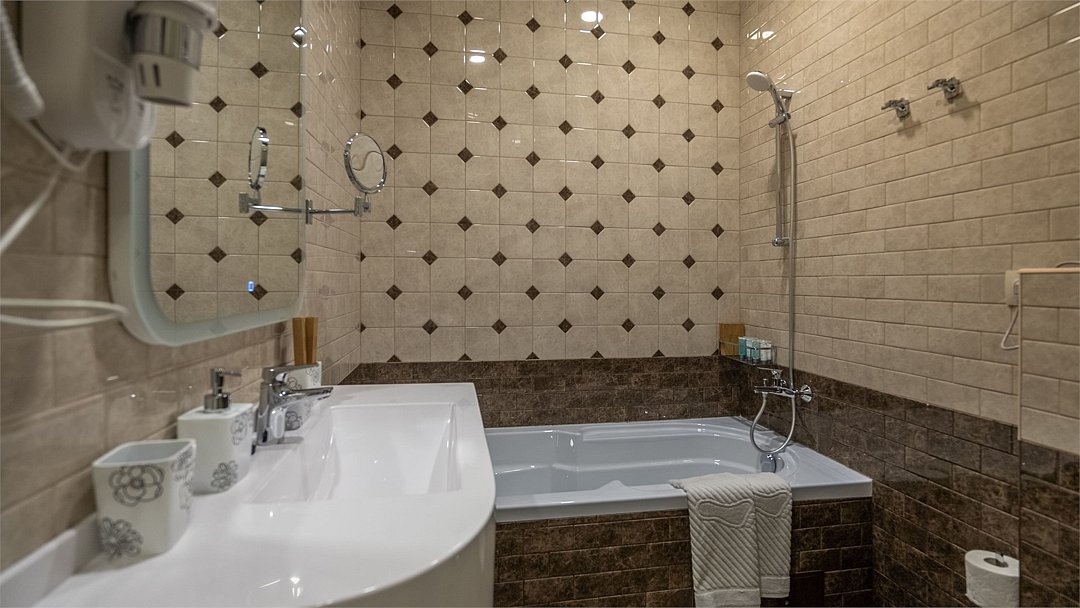 интерактивное телевидение, Wi-Fi, интернет, IP-телефон, система климат-контроля, светильник, настольные лампы, фен, электронные замки, ванна, халаты, банные полотенца, тапочки, гигиенические средства, кровать «King size», кресла, вешалки, журнальный столик, обслуживание номеров, информационная карта, меню, сейф, унитаз, раковина, вид на город, туалетные средства, панорамные окна, цифровое тв, раскладной диван, телевизор с плоским экраном, мини-холодильник, шкаф-купе, частичный вид на море, телевизор со Smart TV, чайная станцияВ гостиничном номере