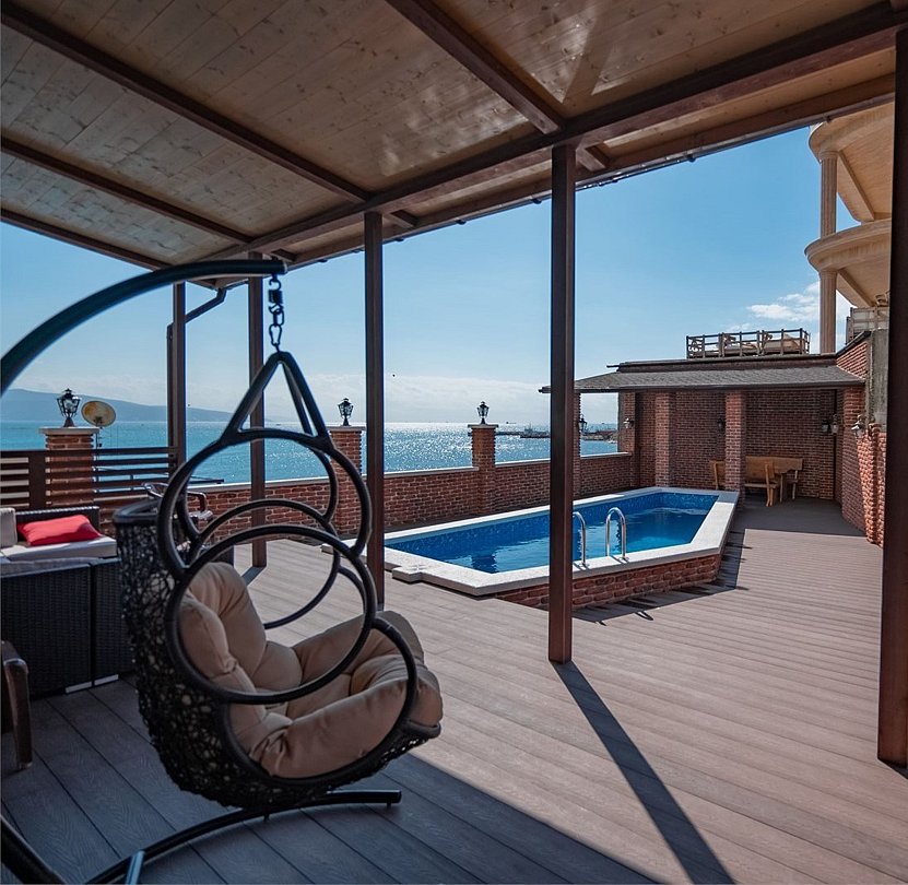 - С бассейном и собственным пляжем