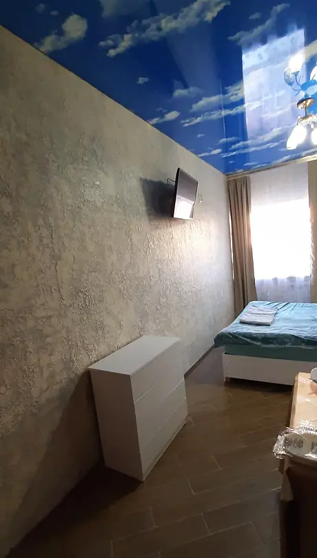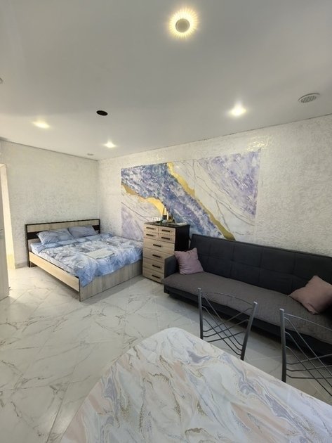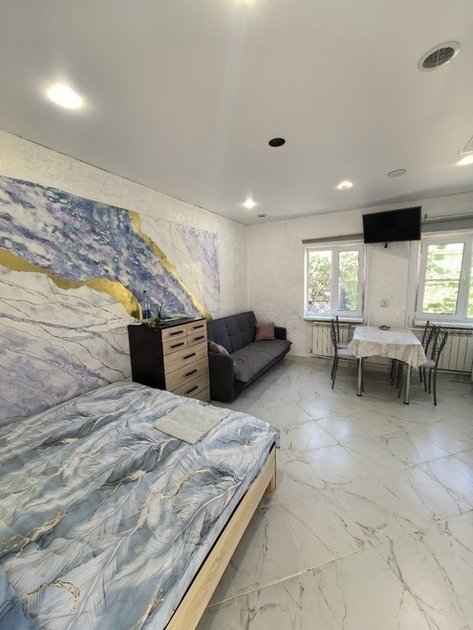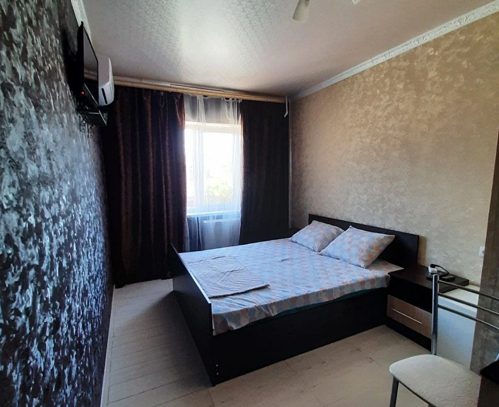 К вашему вниманию номер-студия. Все условия для комфортного проживания: кондиционер, мебель, вся бытовая кухонная техника, Wi-Fi. В номере свой холодильник, также и ванная комната своя и кухня. Предоставляются ванные принадлежности, тапочки. Вода горячая и холодная целый день. Номер закрывается на ключ.