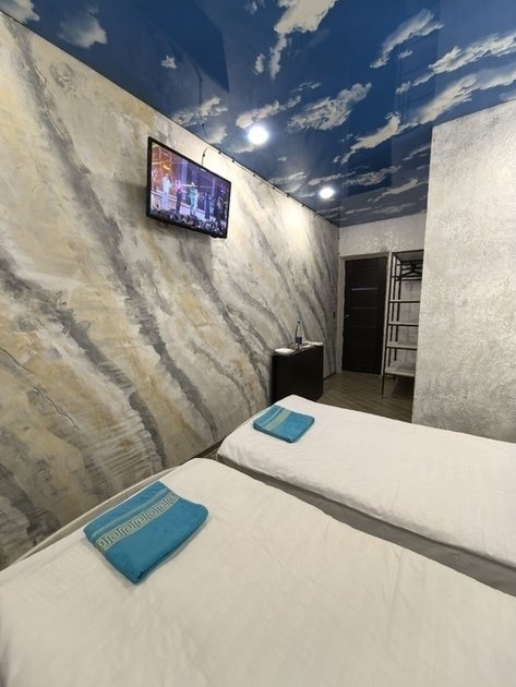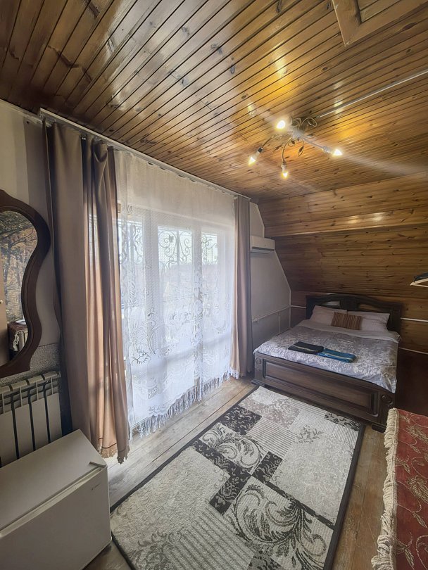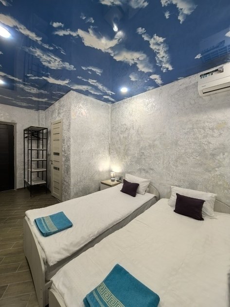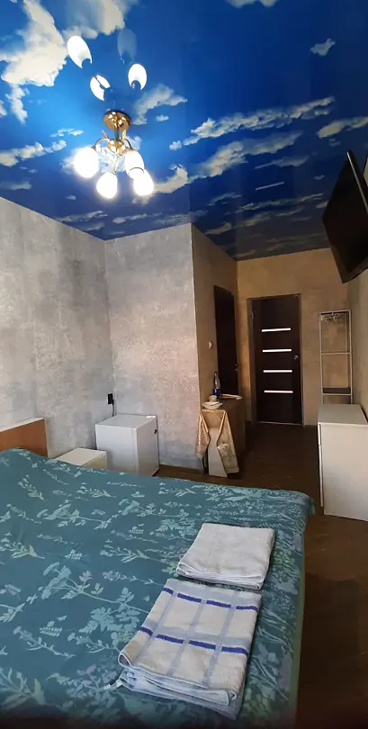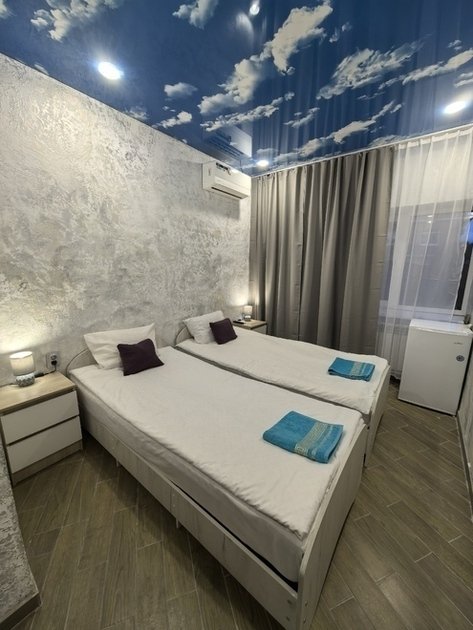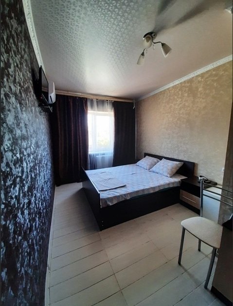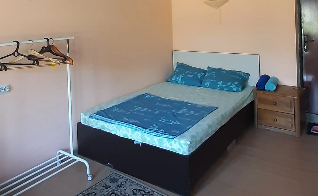 К вашему вниманию двухместный номер-стандарт. Все условия для комфортного проживания: кондиционер, мебель, вся бытовая кухонная техника, Wi-Fi. В номере свой холодильник, также и ванная комната своя, кухня на 3 двухместных номера. Предоставляются ванные принадлежности, тапочки. Вода горячая и холодная круглосуточно. Номер закрывается на ключ.