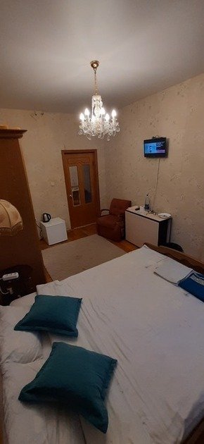 К вашему вниманию двухместный номер-стандарт на 1-м этаже. Все условия для комфортного проживания: кондиционер, мебель, вся бытовая кухонная техника на кухне, Wi-Fi. В номере свой холодильник, также и ванная комната своя, кухня на 3 двухместных номера. Предоставляются ванные принадлежности, тапочки, приветственные бутылочку воды, чай, кофе, сахар, шоколадку. Вода горячая и холодная круглосуточно. Номер закрывается на ключ.
