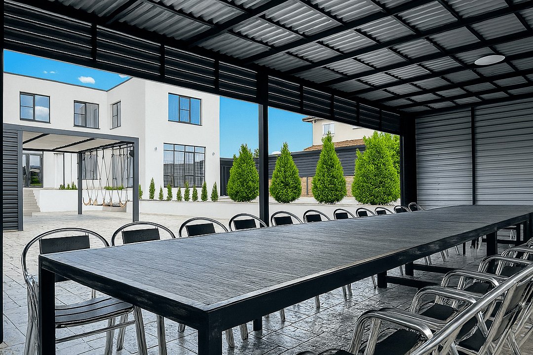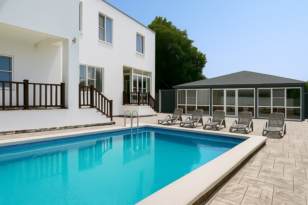 Дом со своим бассейном,баней и беседкой с мангалом во дворе. Полностью оборудован для комфортного отдыха 13 человек.Услуги и удобства