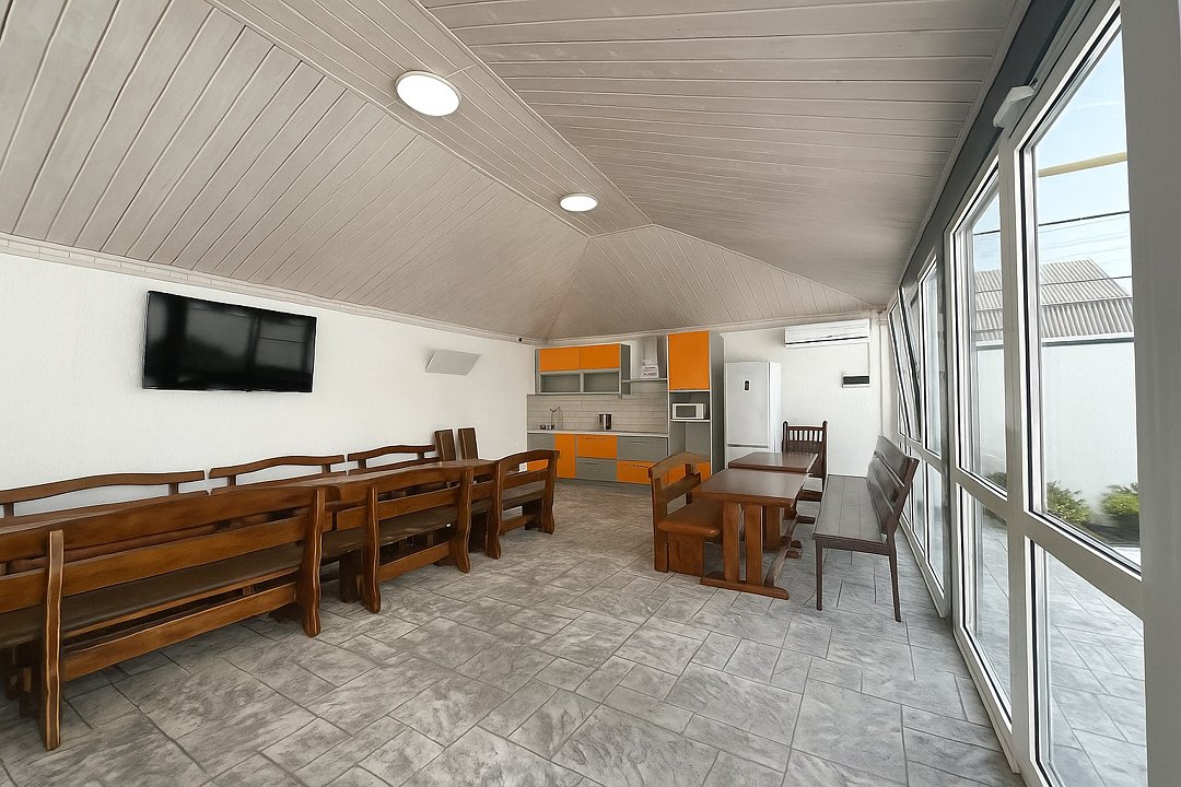Коттедж имеет две отдельные комнаты и одну общую комнату. Есть своя терраса с мангалом. Бассеин в шаговой доступности. Коттедж имеет все необходимое для отдыха до 10 человек.Услуги и удобства