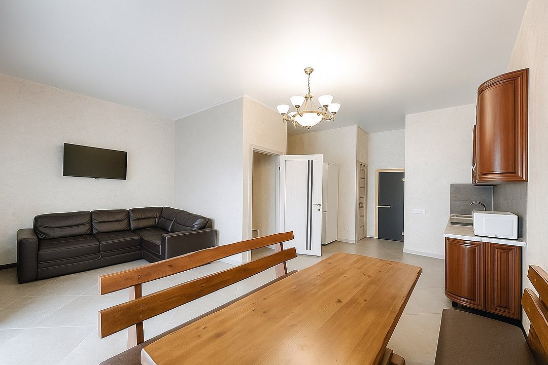 Коттедж имеет две отдельные комнаты и одну общую комнату. Есть своя своя баня оплачивается отдельно. Бассейн в шаговой доступности. Коттедж имеет все необходимое для отдыха до 8 человек.Услуги и удобства