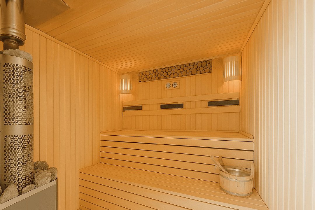 телевизор, спутниковое телевидение, Wi-Fi, интернет, холодильник, кондиционер, фен, плита для приготовления пищи, микроволновая печь, утюг, санузел, дополнительный санузел, сауна, две двуспальные кровати, унитаз, душ, вид во двор, две ванные комнаты, санузел на этаже, туалет, сплит-система, цифровое тв, диван-кровать, вид на бассейнВ коттедже