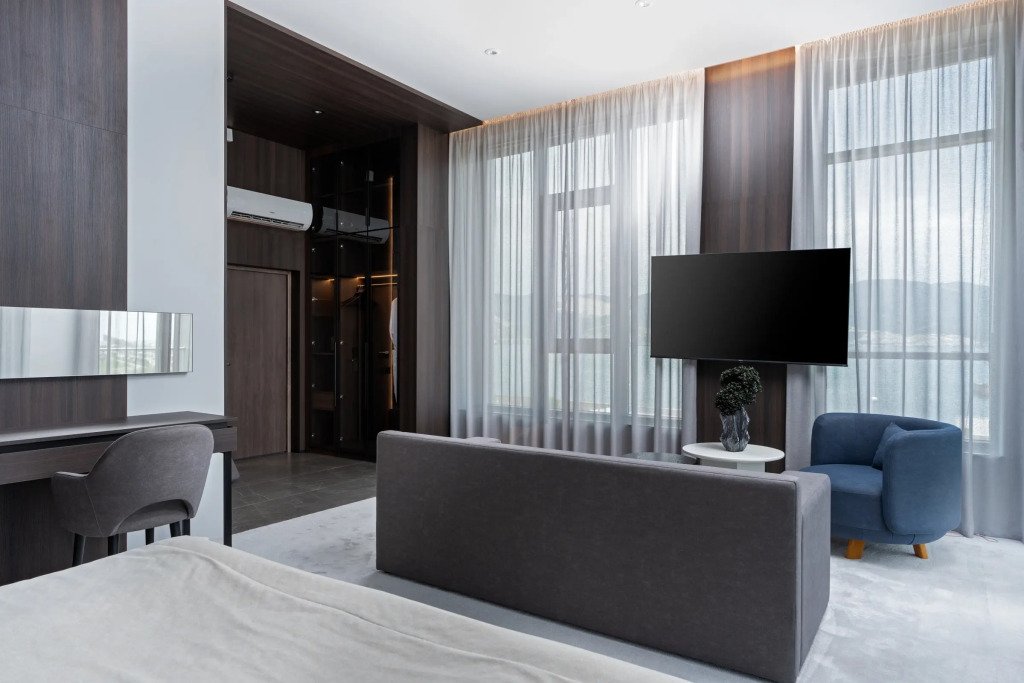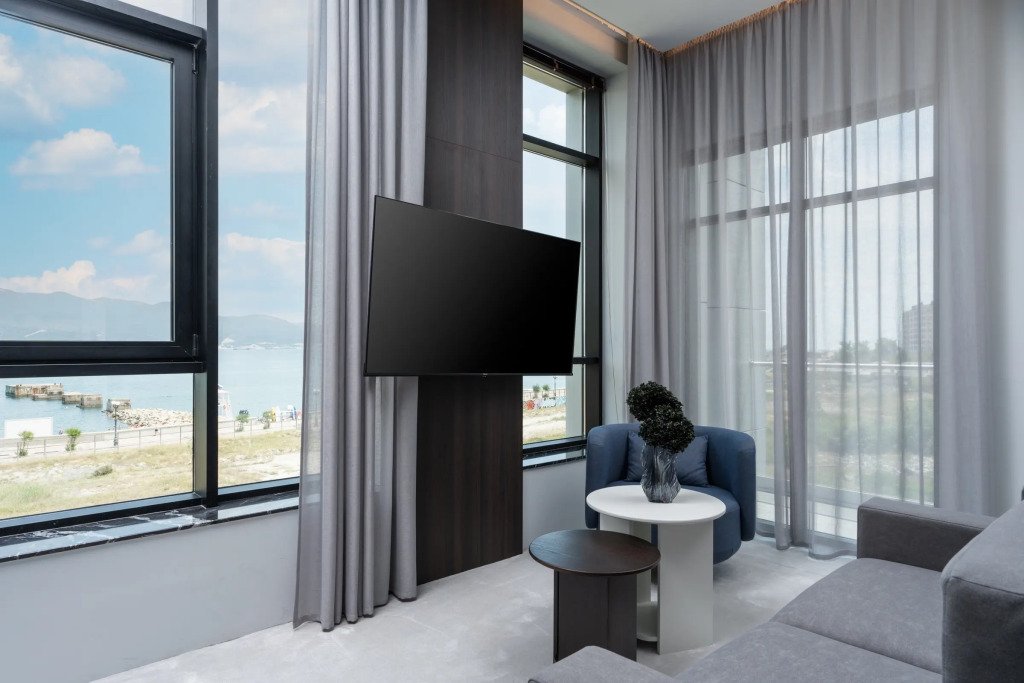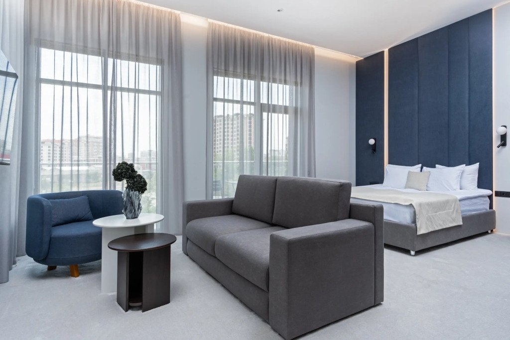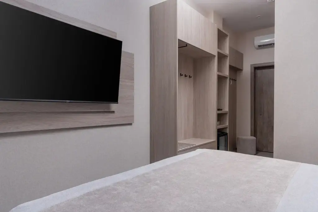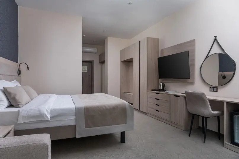 В номере есть телевизор, мини-бар и халат. Оснащение зависит от выбранной категории номера.