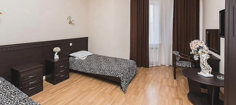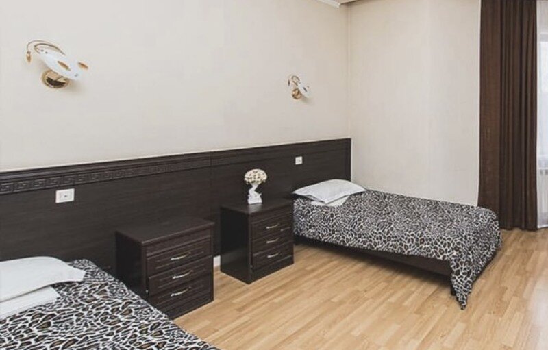 Номерной фонд представлен категориями "Стандарт" и "Люкс". Номера оборудованы одной двуспальной или двумя односпальными кроватями. Интерьер выполнен в домашнем стиле в светло-бежевых тонах.