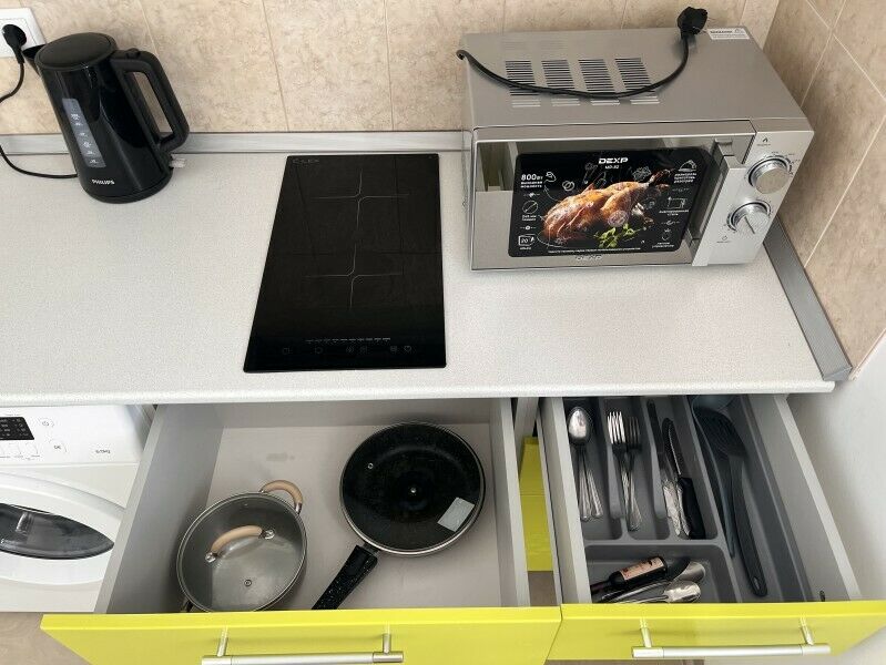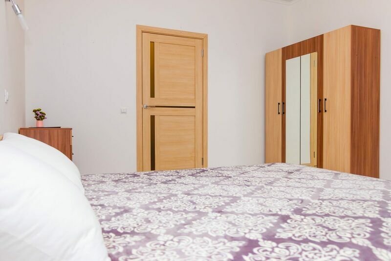 авг. 2022 г.Шикарный номер с евроремонтомЧто касается номера, чистоты, санузла, кроватей и всего что в квартире - твёрдая пятёрка. Номер с новеньким евроремонтом (свежим, не "уставшим"). Просторные комнаты, большая светлая кухня. Стоит довольно дёшево по московским меркам (5500 в сутки на семью из 5 человек). В одной комнате двухспальная кровать, в другой - ещё одна + раскладной диван-полуторка. К качеству номера ни одного замечания, всё идеально. Плохо только то, что эти номера аж на 4 этаже и без лифта.