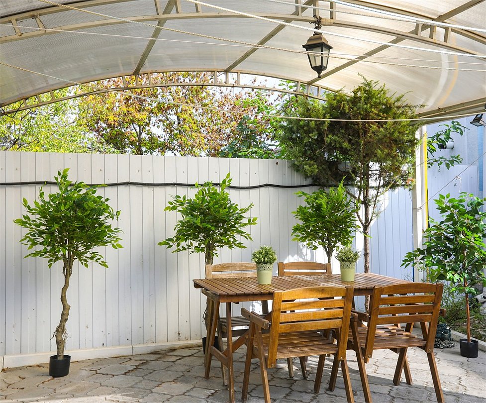 Wi-Fi, светильник, обогреватель, ванная комната, банные полотенца, терраса, гипоаллергенное белье, ортопедический матрас, тумбы, стулья, шкаф для одежды, вешалки, обеденный стол, унитаз, отдельный вход в номер, душ, плиточное покрытие, три односпальные кровати, HBO (Американская телевизионная сеть), вид во двор, стаканы, столовые приборы, сплит-система, сушилка для белья, телевизор с плоским экраном, мини-холодильник, телевизор со Smart TV, номер для некурящих, USB-порт, рабочий столВ гостиничном номере