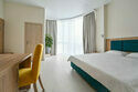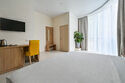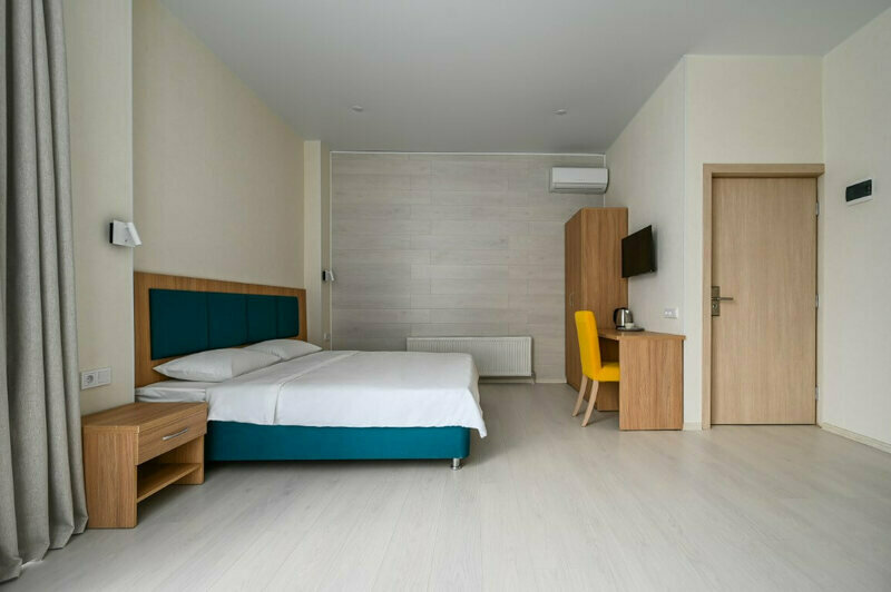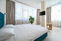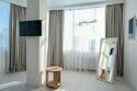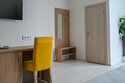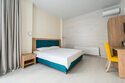 Приятный отдых и крепкий сон обеспечит комфортная кровать размера queen size с ортопедическим матрасом и мягким изголовьем. Санузел: туалет с душевой кабиной, площадью 4,5 кв. м, оснащен гостиничной парфюмерией и банными принадлежностями. Номер обеспечен бесплатной Wi-Fi сетью, системой кондиционирования, интерактивным телевидением HD, чайной станцией, столом с канцелярией и телефоном.