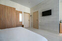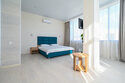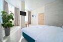 Кровать двуспальная queen size, тумбочки прикроватные, шкаф, холодильник, кондиционер, телевизор, чайник, санузел (душ+туалет)