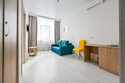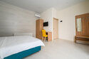 Приятный отдых и крепкий сон обеспечит комфортная кровать размера queen size с ортопедическим матрасом и мягким изголовьем. Санузел: туалет с душевой кабиной, площадью 3 кв. м, оснащен гостиничной парфюмерией и банными принадлежностями. Номер обеспечен бесплатной Wi-Fi сетью, системой кондиционирования, интерактивным телевидением HD, чайной станцией, столом с канцелярией и телефоном.